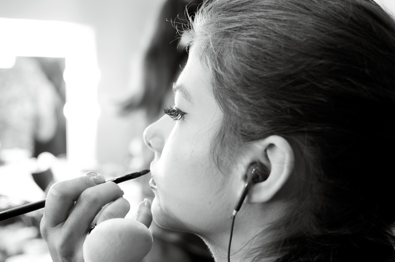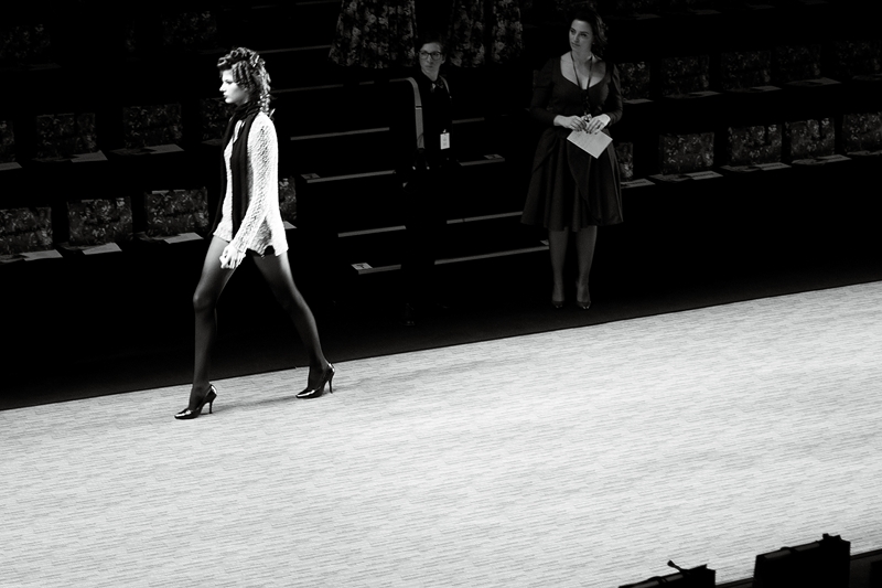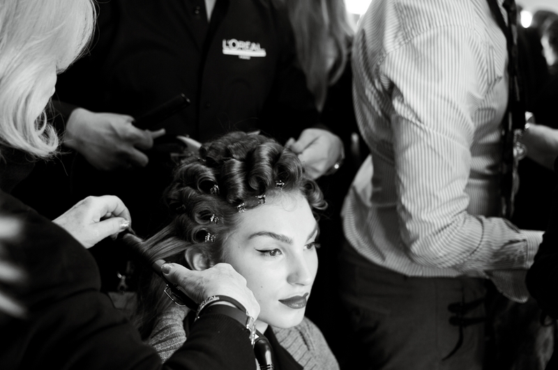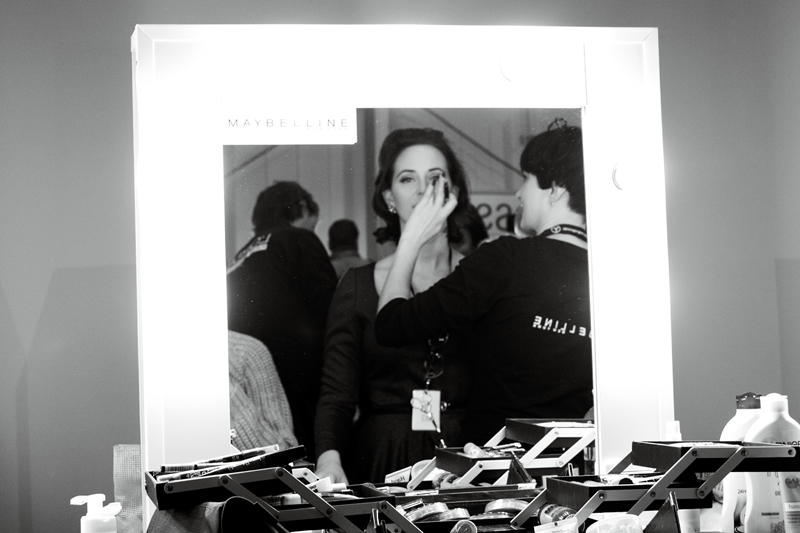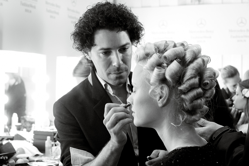 Ich sehe Lena vor der Show backstage, wo sie sich, total entspannt wirkend, noch rasch den Saum ihres Kleides richten lässt. Geduldig beantwortet sie Fragen und steht den Fotografen zur Verfügung. Make-up-Artist Boris Entrup kontrolliert nochmals das Make up der Models und Kerstin, Lenas langjährige Assistentin, achtet darauf, dass Kleider und Accessoires griffbereit sind.