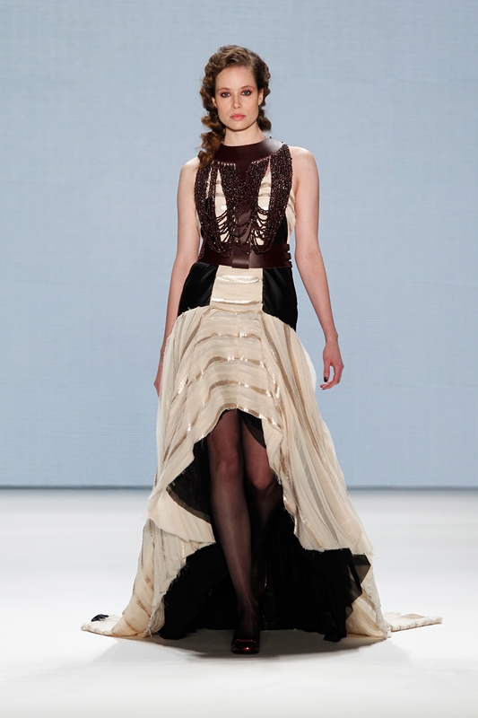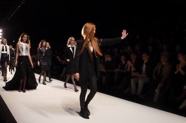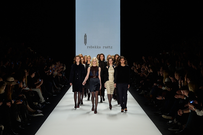 Rebekka Ruétz macht „Mode für die moderne Amazone“ „Black Diamonds“ ist diesmal der Titel der Herbst/Winter Kollektion 2014/15 von Rebekka Ruétz, mit der die Tiroler Designerin auf der Berliner Fashion Week wieder einmal begeisterte. In der First Row zahlreiche prominente Gäste wie Thomas Hayo, Annika Kipp, Mirja Du Mont, Sanny van Heteren, Rolf Scheider, Marie Nasemann, Lea Mornar und Ariane Sommer. Rebekkas Modelle bestechen durch ihre auffälligen Silhouetten wie Key Men’s Wear Items, Übermäntel mit hängenden Schultern und Bundfaltenhosen, die in großen Falten über den Schuhen getragen werden. Abend-Glamour und Cocktailkleider vervollständigen ihre Kollektion aus Materialien wie hochwertige Lederimitate, Pelzimitate, feinste Seide und Wollstoffe. Farblich „Black Diamonds“ gerecht werdend, arbeitet sie mit dunklen Nuancen und blassen Bergkristall-Tönen.