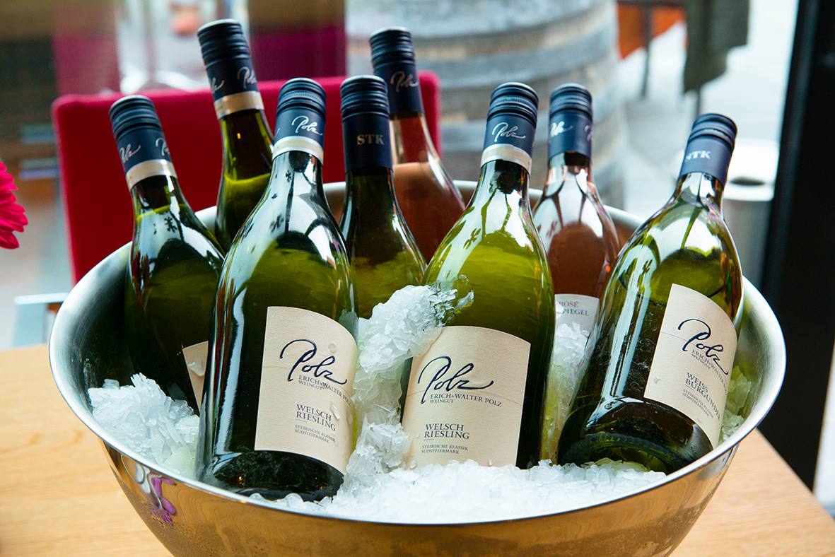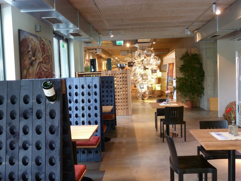 Wenn die Entscheidung einfach zu schwer fällt, wählt man aus der Markthalle/Vinofaktur einen Wein und verkostet ihn gegen einen kleinen Aufpreis im angrenzenden Genusslokal oder im angenehmen Ambiente des Innenhofes. Und wenn dann noch ein kleiner Hunger kommt, gibt es regionale Schmankerln wie Kernöl-Eierspeis oder regionalen Schafskäse – und für die Autofahrer fruchtige Säfte.