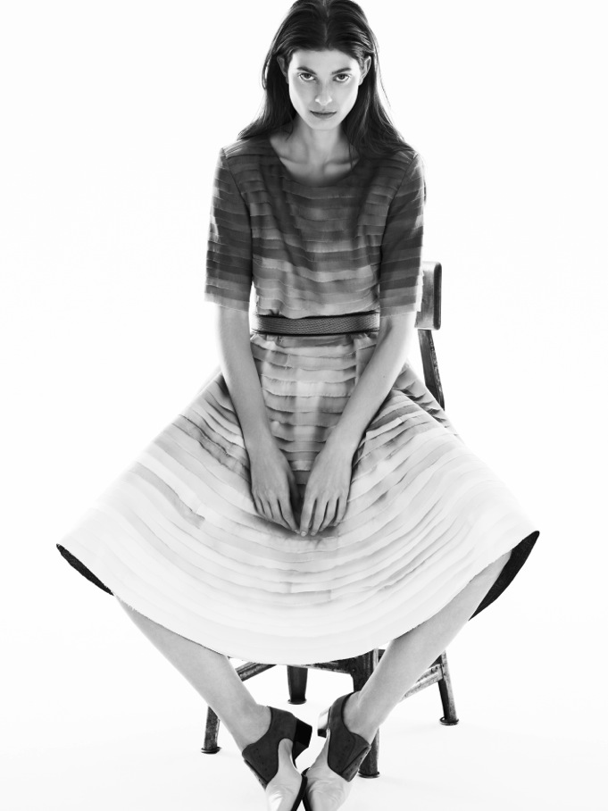 trägt den Arbeitstitel ‘Gary Hume’s Walls’ und ist inspiriert von der Ästhetik des britischen Malers Gary Hume und den Oberflächen des Neuen Museums von David Chipperfield. Die Silhouetten bleiben der ACHTLAND DNA treu: ‘Clean-cut’ elegance mit einem relaxten Feel, während auch in dieser Kollektion Handwerk und Material im Mittelpunkt der Entwicklung der Kollektion steht: Beide Inspirationspunkte finden Ihren Weg in die Kollektion durch aufwändige Handstickereien, gemalte Prints und gestepptes Leder. Die Stoffe sind auch für diese Kollektion ein sehr wichtiger Ausgangspunkt: Seiden (TARONI) und Woll- und Kaschmirstoffe (LORO PIANA) kommen aus Italien, Baumwolle und Spitze werden aus der Schweiz.