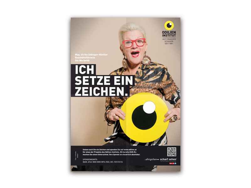 In der Weiterentwicklung dieses Öffentlichkeitsauftrittes als Teil eines gesamtheitlichen Marketing-Konzeptes machen heuer 13 prominente steirische Brillenträger mit „Ich setze ein Zeichen“ auf die über 130-jährige Einrichtung aufmerksam. Darunter Katharina Plattner (Designerin Andy Wolf Eyewear), Gerhard Balluch (Kammerschauspieler), Reinhard P. Gruber (Literat), Bernd Pürcher von art + event, Model Anja Platzer und Andreas Sauseng (Direktor Casino Graz).