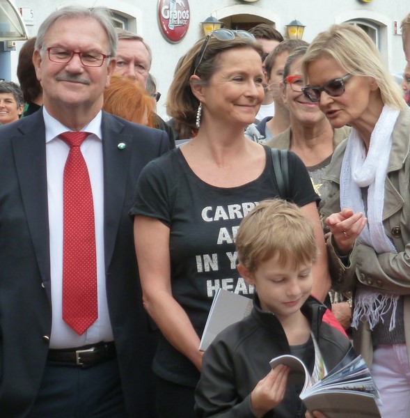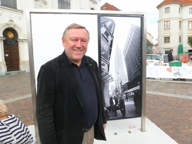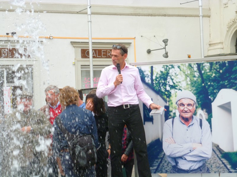 Christian Jungwirth entspannt vor seinem Foto mit Hedi Grager und Anne Marie Schullin-Legenstein (Foto Reinhard Sudy)