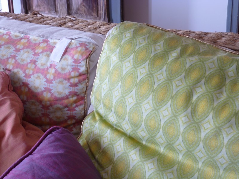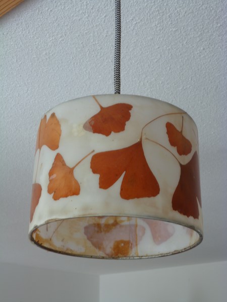 Vor kurzem hat sie wieder mit etwas Neuem begonnen. Unter dem Namen YENSE CREATION stellt sie Lampenschirme her. Inspiration und Motive findet sie fast überall und für ihre Arbeit hat sie eine eigene Technik entwickelt. Sie schneidet Blüten, Früchte, Zapfen und vieles mehr durch, fotografiert dann die Schnittflächen und holt sich einen interessanten Ausschnitt heraus. Dieser dient ihr dann als Motiv für Lampenschirme, Schals, Pölster, Decken, Couchüberzüge und mehr – und natürlich macht sie auch Auftragsarbeiten. Ihre Arbeiten werden bereits in Geschäften in Biarritz und Bayonne verkauft. Besonders gut gefielen mir ihre Lampenschirme aus alten Plänen, die sie von ihrem Vater, dem Grazer Architekten Werner Bachan, erbte.