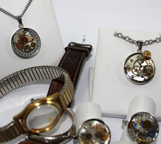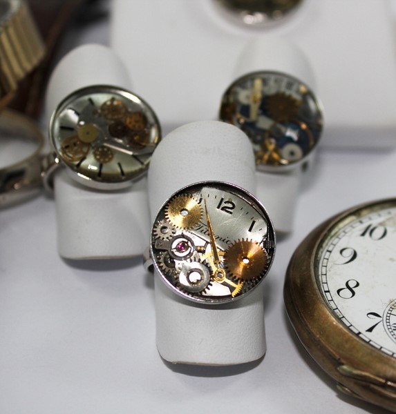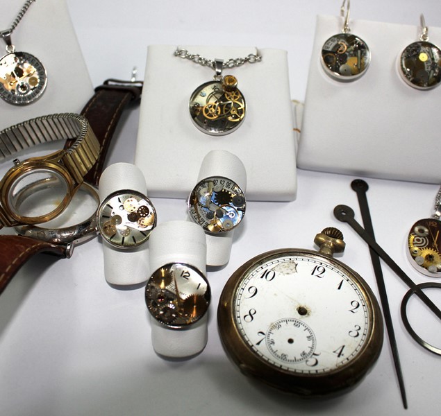 So kam dem kreativen Paar die Idee: Was tun mit kaputten Uhren? „Wir haben uns dazu entschlossen, diese nicht einfach wegzuwerfen sondern zu verwerten“, erzählt Nicole. „Uhrwerke wurden zerlegt, Zahnräder ausgebaut, kleinste Teile zusammengesammelt und mit Hilfe von einem speziellen Kleber und einer UV Lampe in 925 Silber eingegossen. Es entstand die Time Warp Kollektion, besondere Schmuckstücke ganz im Sinne des Upcycling Trends. So trägt man seine Erinnerungen, die man oftmals mit seinen Uhren verbunden hat, in Ringen, Anhängern und Ohrringen weiter.