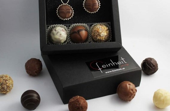 Kreativ und vor allem süß sind auch die „Feinheit“-Verpackungen. Dazu verrät mir Nicole: „Wir haben sehr lange überlegt, welche Verpackung wir nehmen, da ich unbedingt etwas Besonderes wollte. Leider ist mir nichts eingefallen – bis ich eines Tages von einer Pralinenverpackung geträumt habe. Das war wirklich so“, bekräftigt Nicole schmunzelnd. Die passenden Schachteln fand sie bei der Grazer Firma Idee & Werk, die Pralinen bezieht sie meist von Pralinamo aus Eberstalzell.