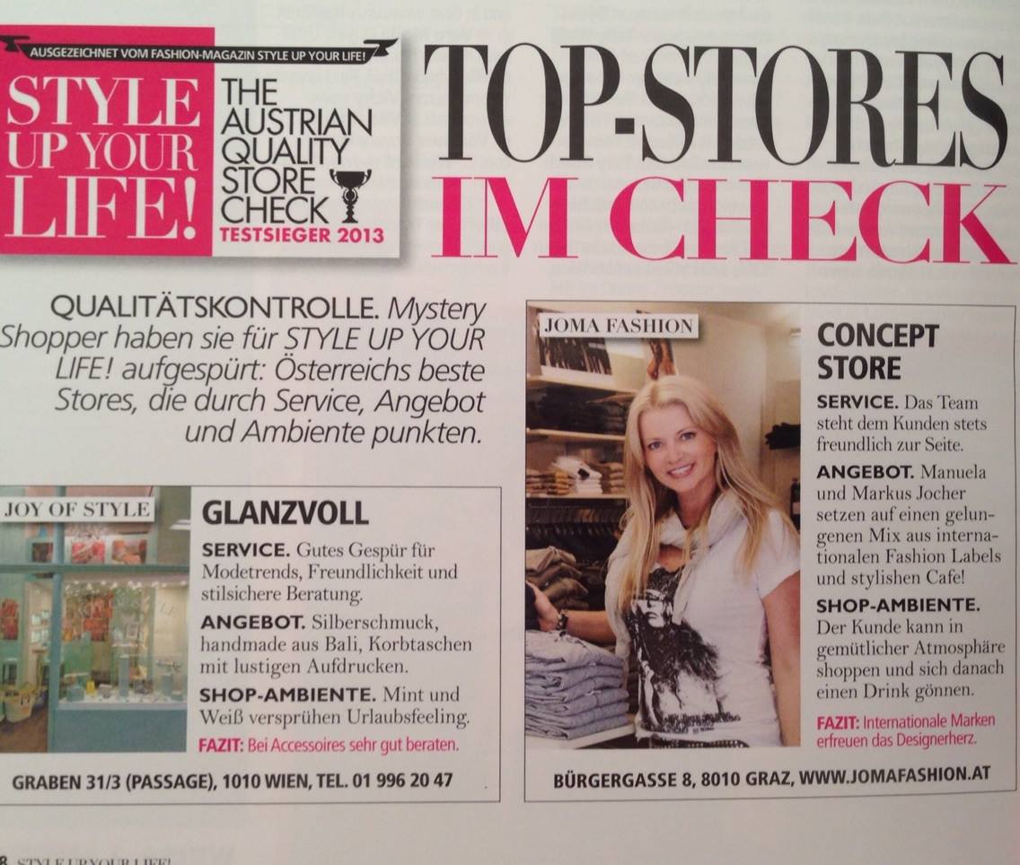 Manuela und Markus Jocher sind das, was man ein Glamourpaar nennen könnte: attraktiv, charmant, modebewusst und sehr sympathisch. Seit einigen Jahren führen die beiden erfolgreich ihren JOMA Fashion Conceptstore inmitten der schönen Grazer Altstadt. Ihre teils prominenten Kunden genießen es, in diesem gemütlichen und entspannten Ambiente einzukaufen. Um ihren Kunden das Einkaufen noch bequemer zu machen, eröffneten sie jetzt ihren JOMA Fashion Online Shop.