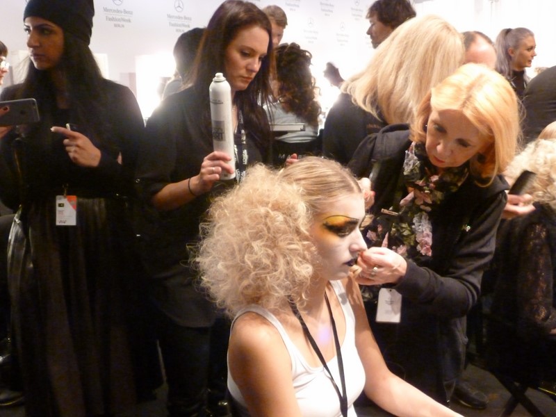 Die Models wurden für die Show von Rebekka Ruetz backstage in Szene gesetzt (Foto Hedi Grager)