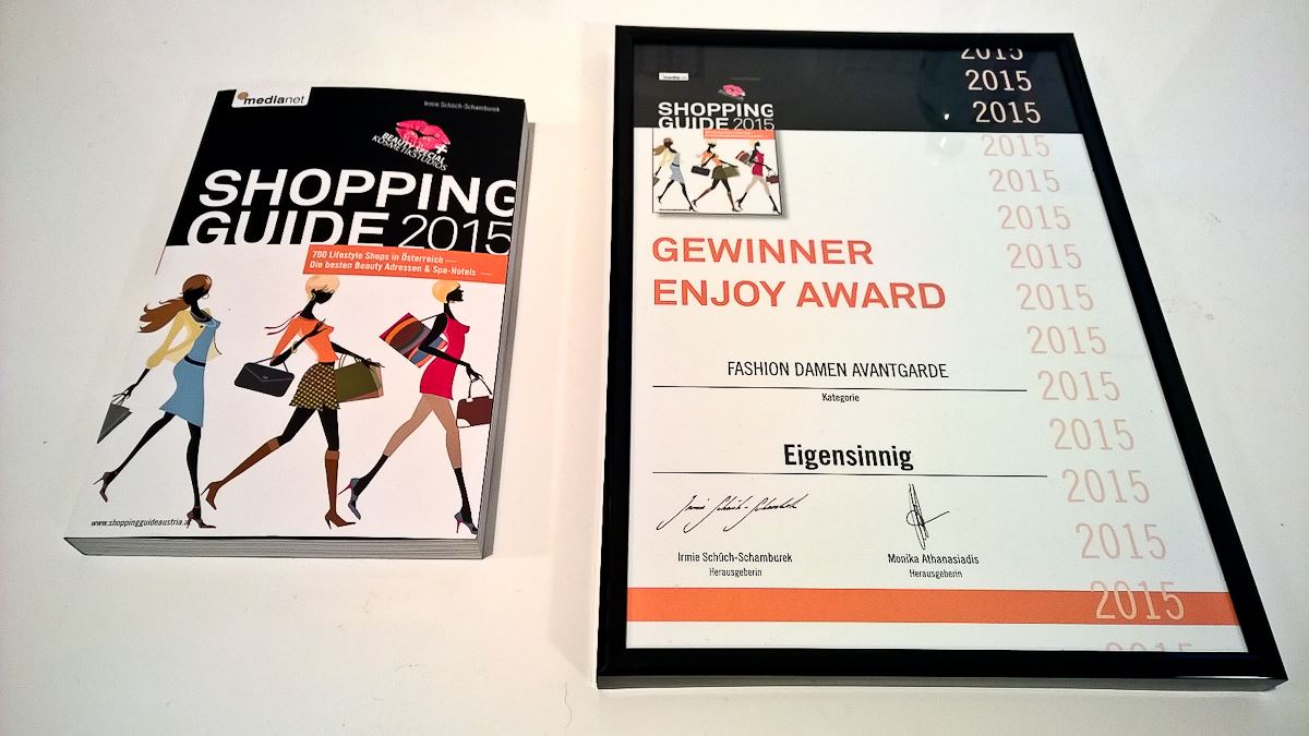 Die „eigensinnig(e)“ Boutique am Wiener St. Ulrichs-Platz gewann den Award als bester Store für „Avantgarde Fashion Damen“. Dieser wurde ‚eigensinnig‘ vom Shopping Guide Austria verliehen.