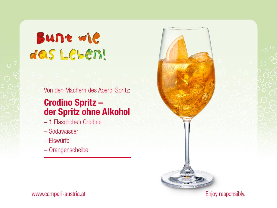 Cocktail des Monats März ist bei CAMPARI AUSTRIA der alkoholfreie CRODINO SPRITZ. CAMPARI AUSTRIA präsentiert 2015 jeden Monat einen speziellen Cocktail mit Brands, die zur CAMPARI GRUPPE gehören.