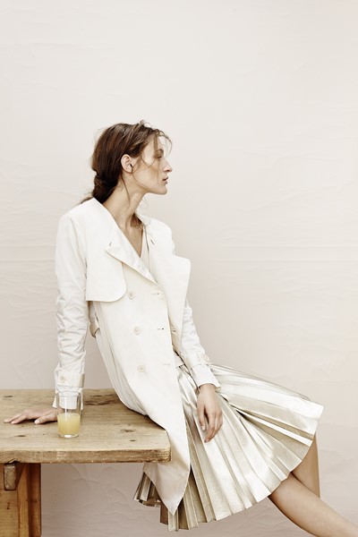 Natürlich möchte ich jetzt noch wissen, was für den kommenden Sommer zu erwarten ist und bekomme lächelnd zur Antwort: „Mein Overall, den ich schon die letzten Jahre mache“. Ich höre sie wieder lachen. „Ich bin schon lange ein Fan von Overalls und habe ihn sehr gut verkauft. Er ist ein sehr cooles Teil, worin man sehr gut angezogen ist. Wichtig ist auch die legere, weite Hosenform in Verbindung mit einem femininen Sweat-Oberteil oder einem eleganten Blusenshirt“.