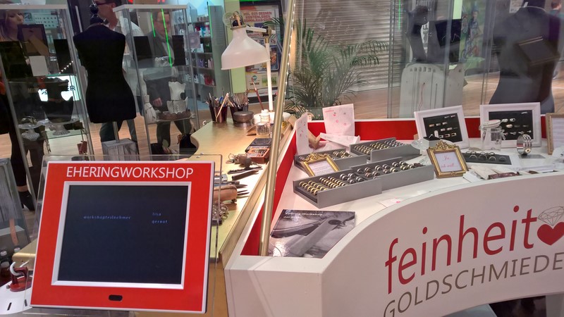 Nicole Dressler und Andreas Feiertag haben ihr „Feinheit“-Schmuckwohnzimmer mitten ins Einkaufszentrum Shopping Nord verlegt.