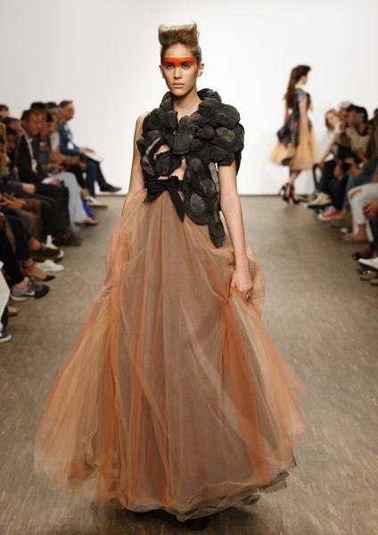 I‘ VR ISABEL VOLLRATH ist das Label von Isabel Vollrath, der schon mehrfach national und international ausgezeichneten Absolventin der Kunsthochschule Berlin-Weißensee. Die Designerin liebt außergewöhnliche Materialien, entwirft grenzüberschreitende Mode, die als dreidimensionale Zeichnung, als Collage, Objekt der „Bildhauerei“ – als Skulptur am menschlichen Körper gesehen werden kann.