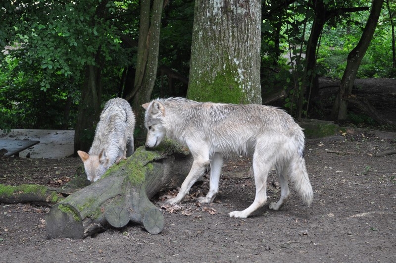 Sehr spannend wurde es dann, als ich mich hinhockte und die Wölfin Tala an mir schnupperte, ihre Nase unter meine Achsel stieß. Chitto fühlte sich dann auch genötigt zu schauen, was da Spannendes an mir ist, das Tala so faszinierte. So schnupperte auch er an mir und stellte dann seine Pfoten auf meinen Rücken. Marleen erklärte mir, dass irgendetwas an mir die beiden Wölfe interessierte – vielleicht war es mein Parfum.