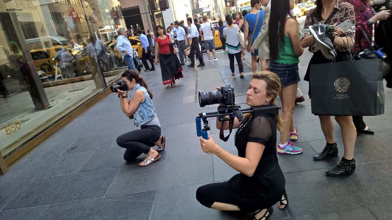 Foto Eva Maria Guggenberger, Video Marie Nadine Wohlmuth, Designerin Eva Poleschinski und Journalistin Hedi Grager beim Shooting in New York (Foto Reinhard Sudy)