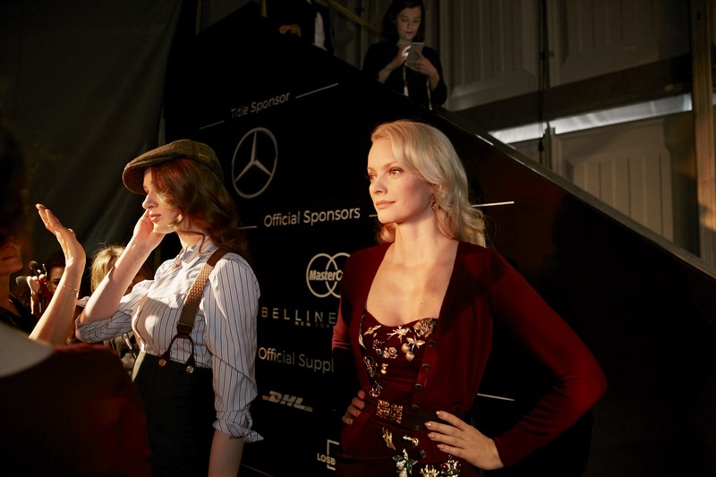 Backstage Lena Hoschek hier mit Topmodel Franziska Knuppe (Fotos Nicholas Beutler und Michael Romacker)