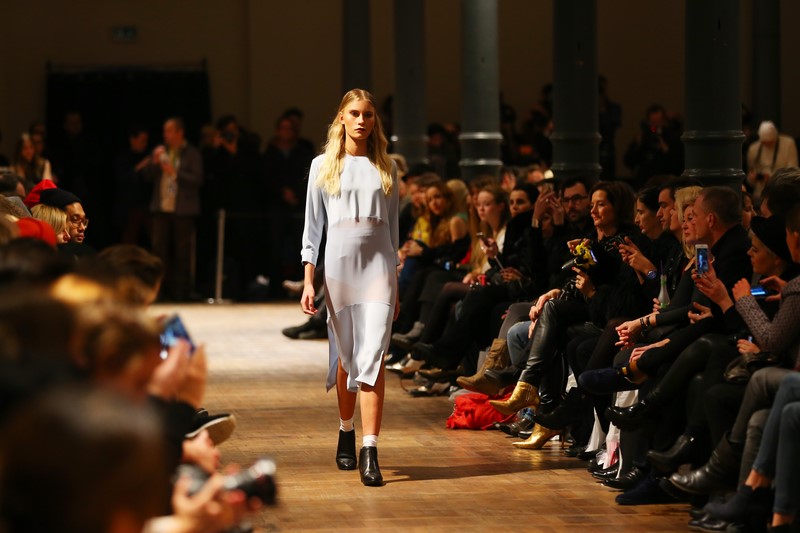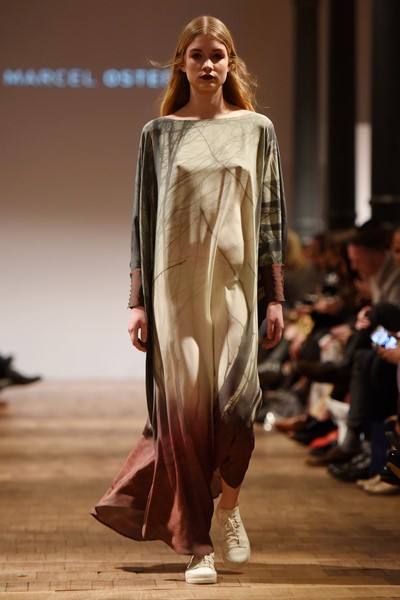 Das Publikum in der Berliner Heeresbäckerei war begeistert von der neuen Herbst/Winter-Kollektion des großartigen Designers Marcel Ostertag (Photo by Clemens Bilan/Getty Images)