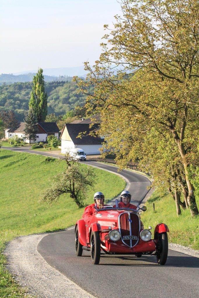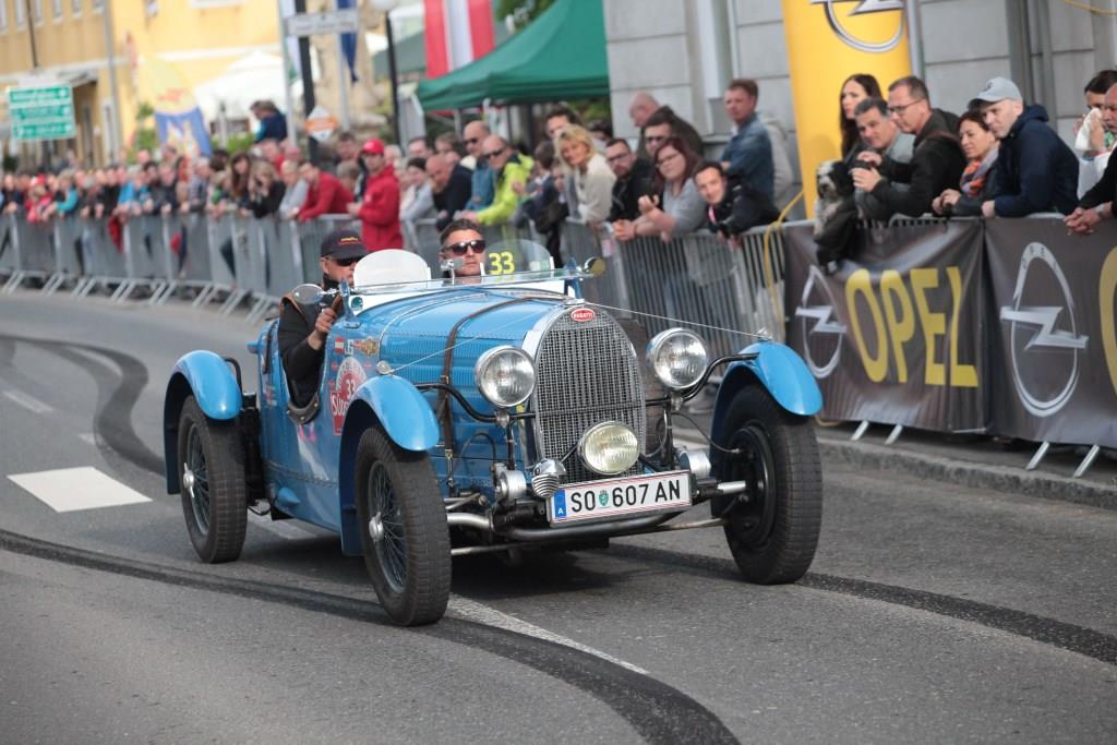 Nach dem Eröffnungsabend unter der Patronanz von „Opel Österreich“ ging es am ersten Renntag, dem 22. April, ab 07:00 los. Die Teams starteten im 30 Sekunden-Intervall ab Gamlitz, um die rund 350 km lange Strecke des ersten Fahrtages mit ihren 11 Sonderprüfungen in Angriff zu nehmen. Mit Startnummer 1 ging Erich Hoop aus Liechtenstein mit einem Bugatti T13 Brescia aus dem Jahre 1922 ins Rennen.