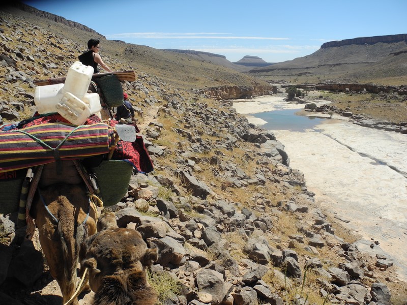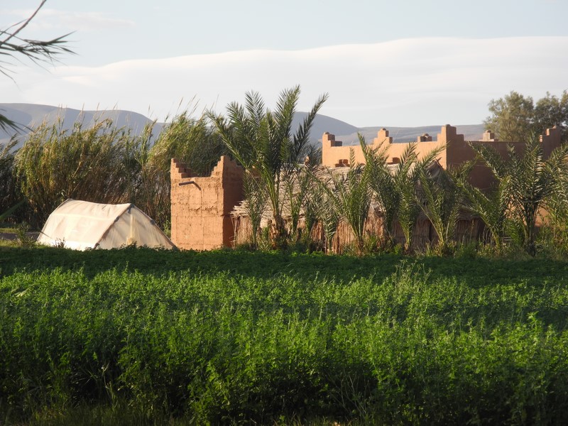 Auf seinem ca 40 ha großen Anwesen hat Said alles selber gebaut, die Häuser, die Wasserverrohrung usw. Hier leben Dromedare, Ziegen, Schafe und Kühe. Angebaut werden Zwiebeln, Tomaten, Karotten, Erdäpfel und Zucchini. Und 300 Tonnen Wassermelonen jährlich. „Unter seinem Anwesen fließt ein Fluss. Es gibt ein riesiges Wasserbecken, das wie ein Wüstensee aussieht , in dem man sogar schwimmen kann und das man auf Google Earth sieht – mitten in der Wüste“, kommt sie ins Schwärmen. Aniko, die auch Architektur an der TU studierte, bevor sie nach Paris zum Modestudium ging, entwirft gerade den Pool mit Holzstegen, schönen Sofas und Pölstern. Daneben wird das Restaurant entstehen, „das keine marokkanische Küche, sondern meine internationale haben wird.“ Said wirft einen liebevollen Blick auf seine Aniko, die mir weiter erzählt: „Ca 500 m weiter weg ist ein Hügel und da wird unser Haus stehen.“ Als sie beim ersten Haus, das Said für sie gebaut hatte, kritisierte, dass es ihr zu finster sei, begann er ein zweites Haus für sie zu bauen. Mit der Fertigstellung wartet er jetzt allerdings, bis Aniko ihm sagt, was sie will. „Ich habe es gerade heute fertig entworfen, und wenn Said zurückfährt, wird es so machen“, schmunzelt sie.
