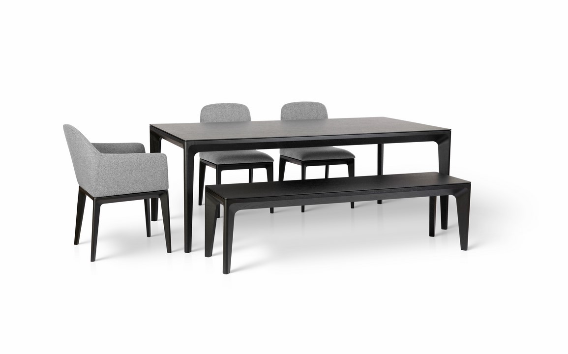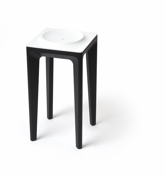 Aber auch die handwerkliche Leistung der Holzwerkstätten ist dem ebenbürtig. Der Tisch aus lackierter Eiche und intelligenten Holzverbindungen bilden ein stabiles Fundament. Durch eine Schattenfuge von der abnehmbaren Schale getrennt, verjüngen sich die Beine nach unten. Ein formaler Zugang Feichtners, den er bereits für die erfolgreiche Vitória Collection für die Neue Wiener Werkstätte verwendet hat.