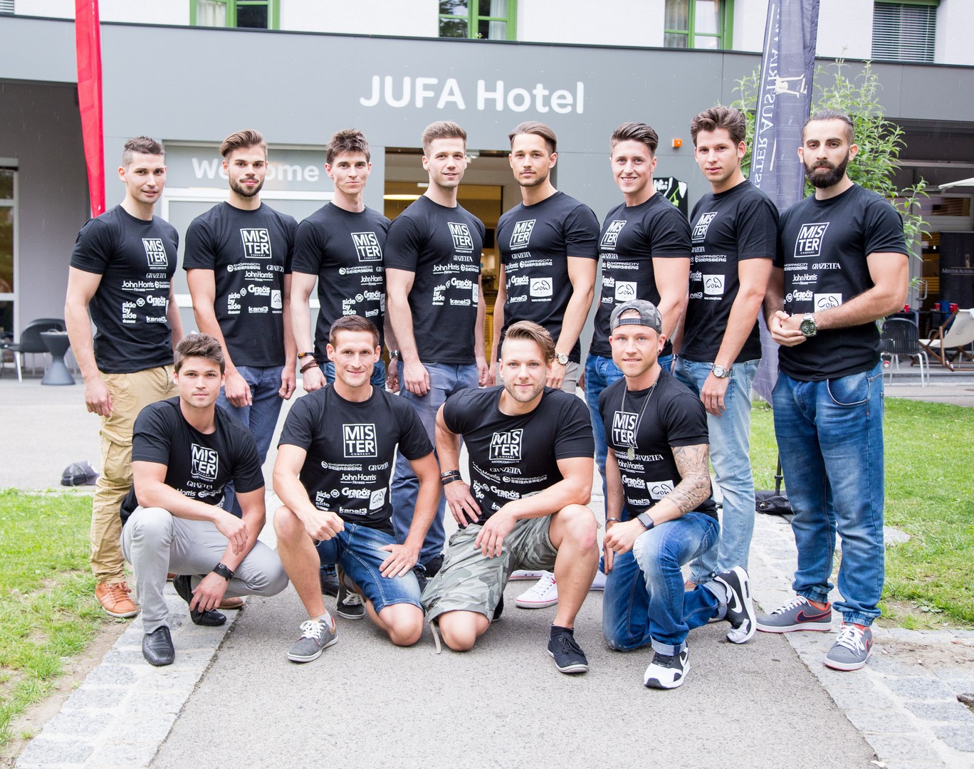 Großes Beitragsfoto: Die Teilnehmer aller drei Bundeländer mit dem Organisationsteam Philipp Knefz und Sabrina Sammer (Foto Mister Austria)