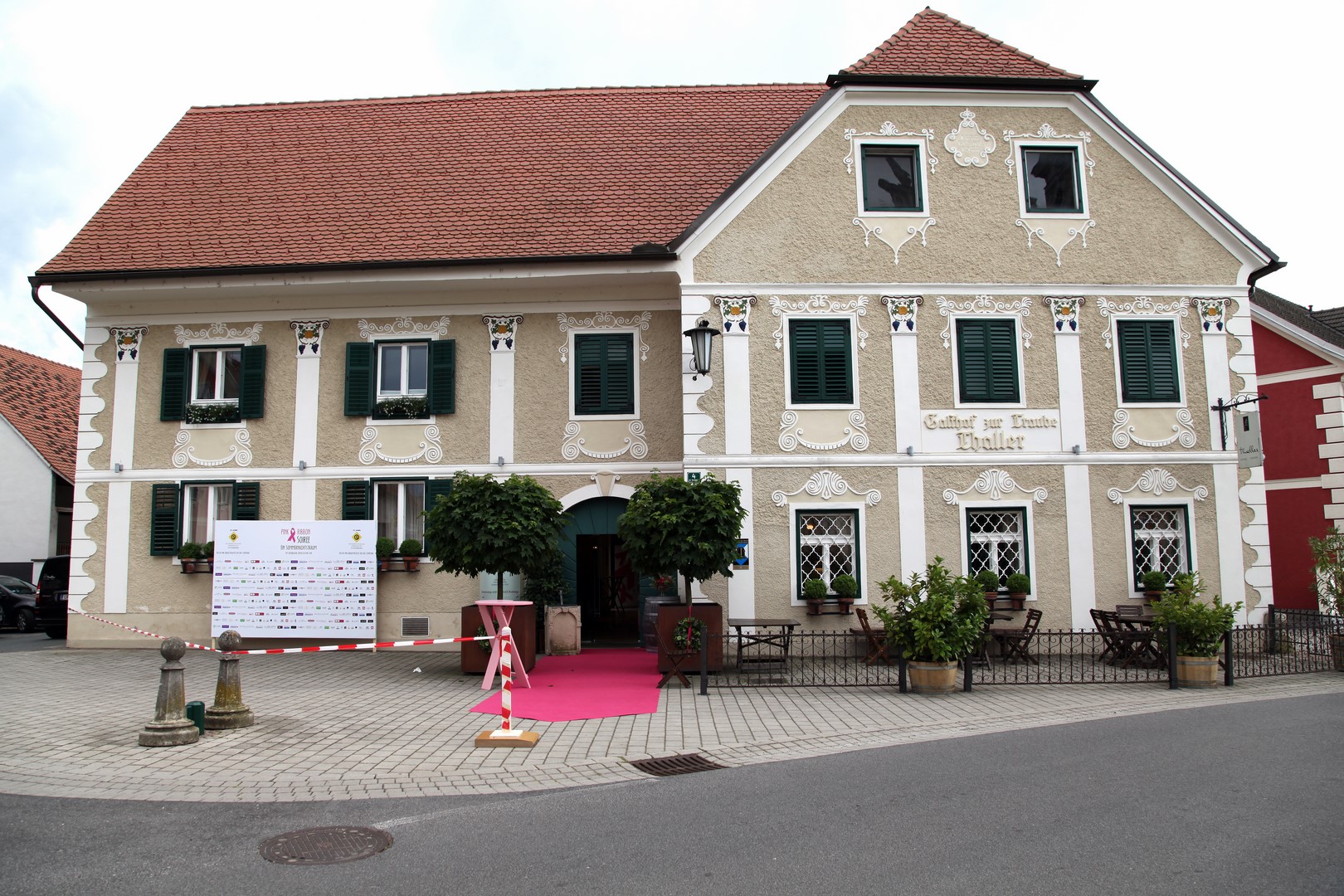 Organisatorin Christiane Baldauf machte zugunsten der Brustkrebshilfe ihren Sommernachtstraum wahr – und verursachte damit einige Aufregung in der eher beschaulichen Gemeinde: Eine Stretchlimousine fuhr vor dem Restaurant Thaller vor, über einen pinkfarbenen Teppich schritten der französische Botschafter Pascal Teixeira und seine charmante Gattin, Designerin Eva Poleschinski und EU-Konsulent Johannes Ausserladscheiter ins Restaurant. Dort hatte Haubenkoch Norbert Thaller unter dem Motto „Essen ist ein Bedürfnis, genießen eine Kunst“ ein dreigängiges Menü und edle Tropfen vorbereitet.