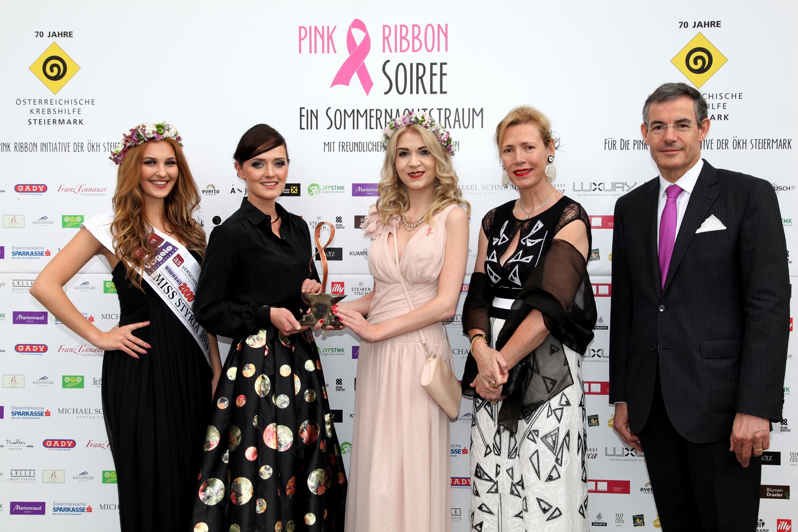 Unter den Gästen und Helfern: Miss Styria 2016 Janine Goger, NAbg. Werner Amon, Ingrid Gady, EU-Konsulent Dr. Johannes Ausserladscheiter und Univ.Prof. Priv.Doz. Dr. Florentia Peintinger von der Steirischen Brustkrebshilfe. Moderiert wurde der Abend von Sandra Suppan.