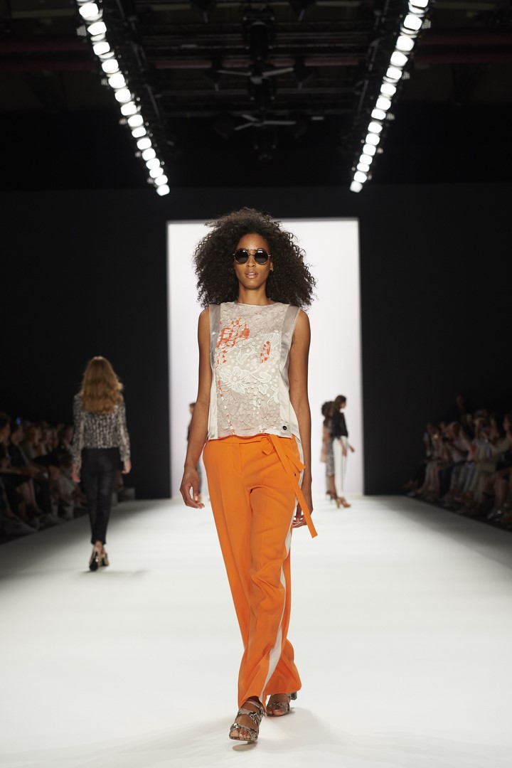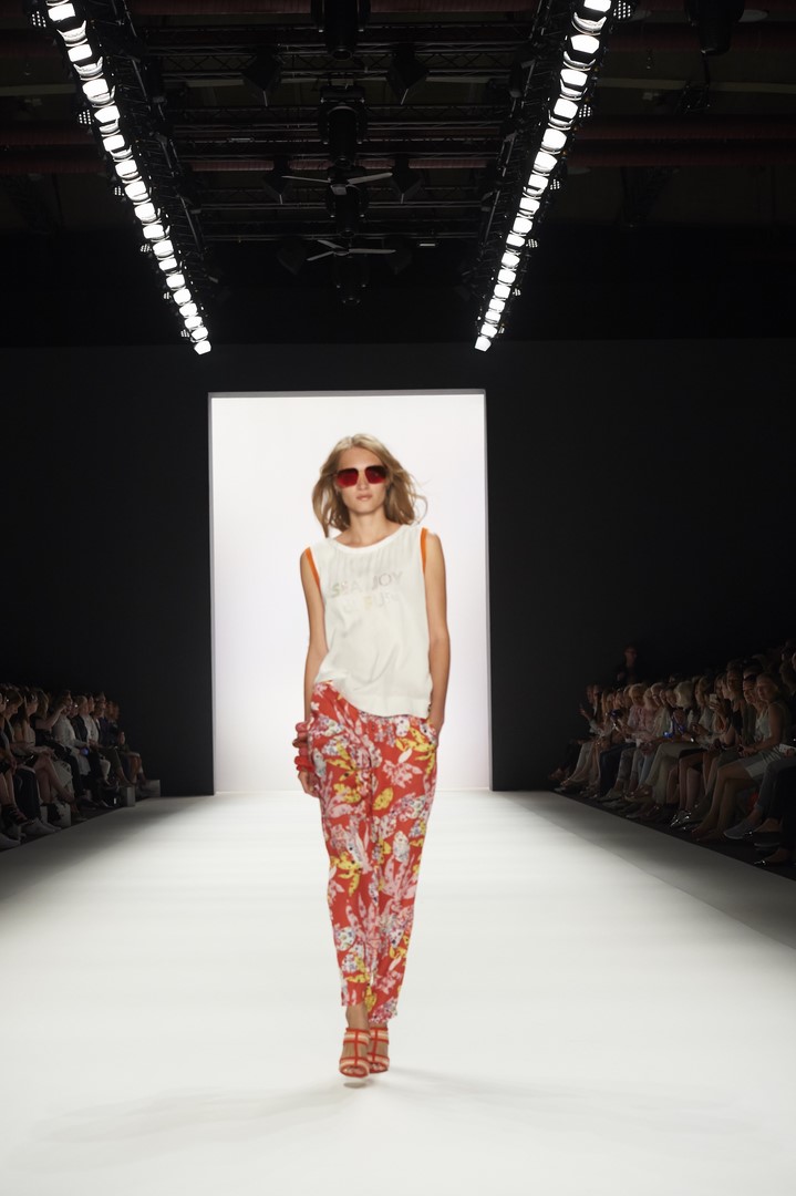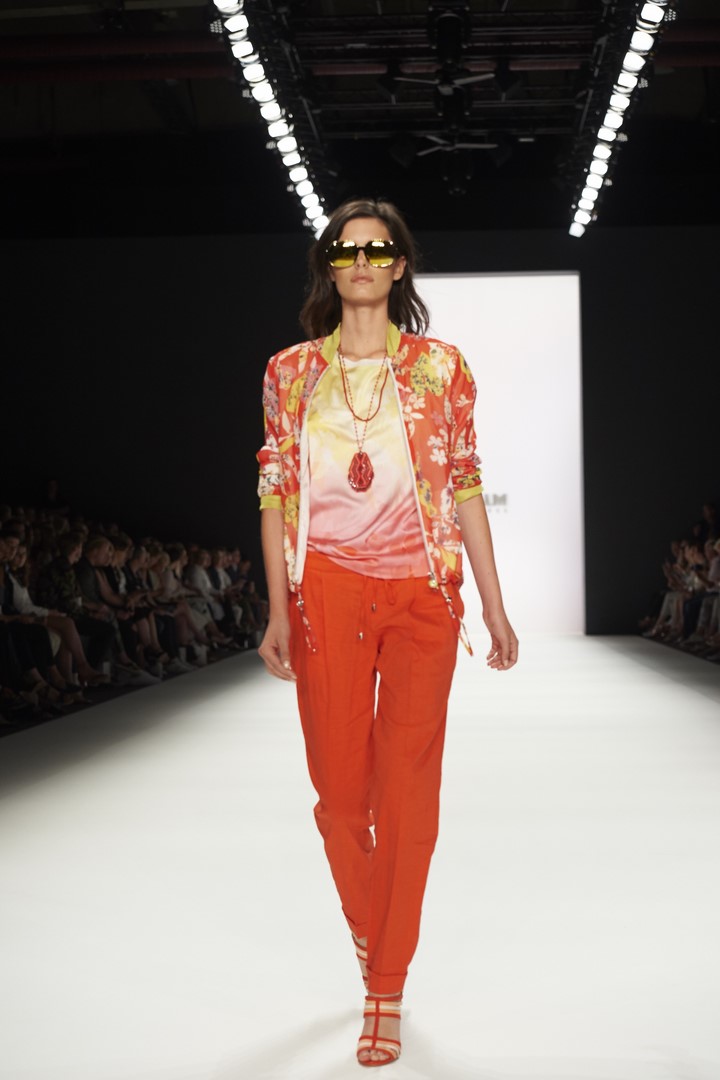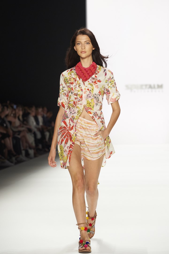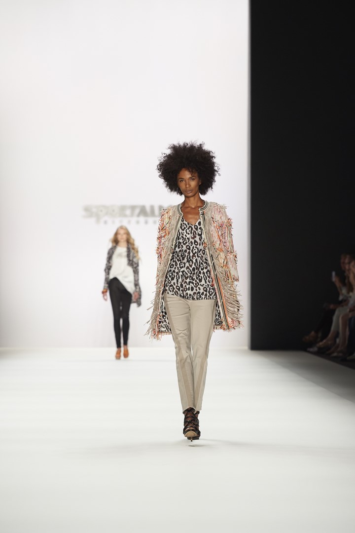 Farblich kombiniert SPORTALM helle, freundliche Farben zu dunklem Blau und Blumenmustern. Im Vordergrund stehen moderne Silhouetten, die aus legeren Sommermänteln, leichten Kleidchen und Hosen in neuer Länge spannende Outfits machen. Modische Highlights setzen auch luftige Blumenprints, die der Kollektion einen romantischen, verträumten Touch verleihen.