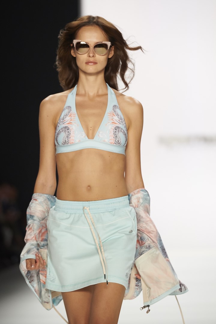 Die Spring/Summer 2017 Kollektion von SPORTALM: Die Farbpalette besteht aus sanften Pastelltönen und frischen Sommerfarben. Weiß und rosa kombiniert mit einem intensiven Mint-Grün (Foto SPORTALM)