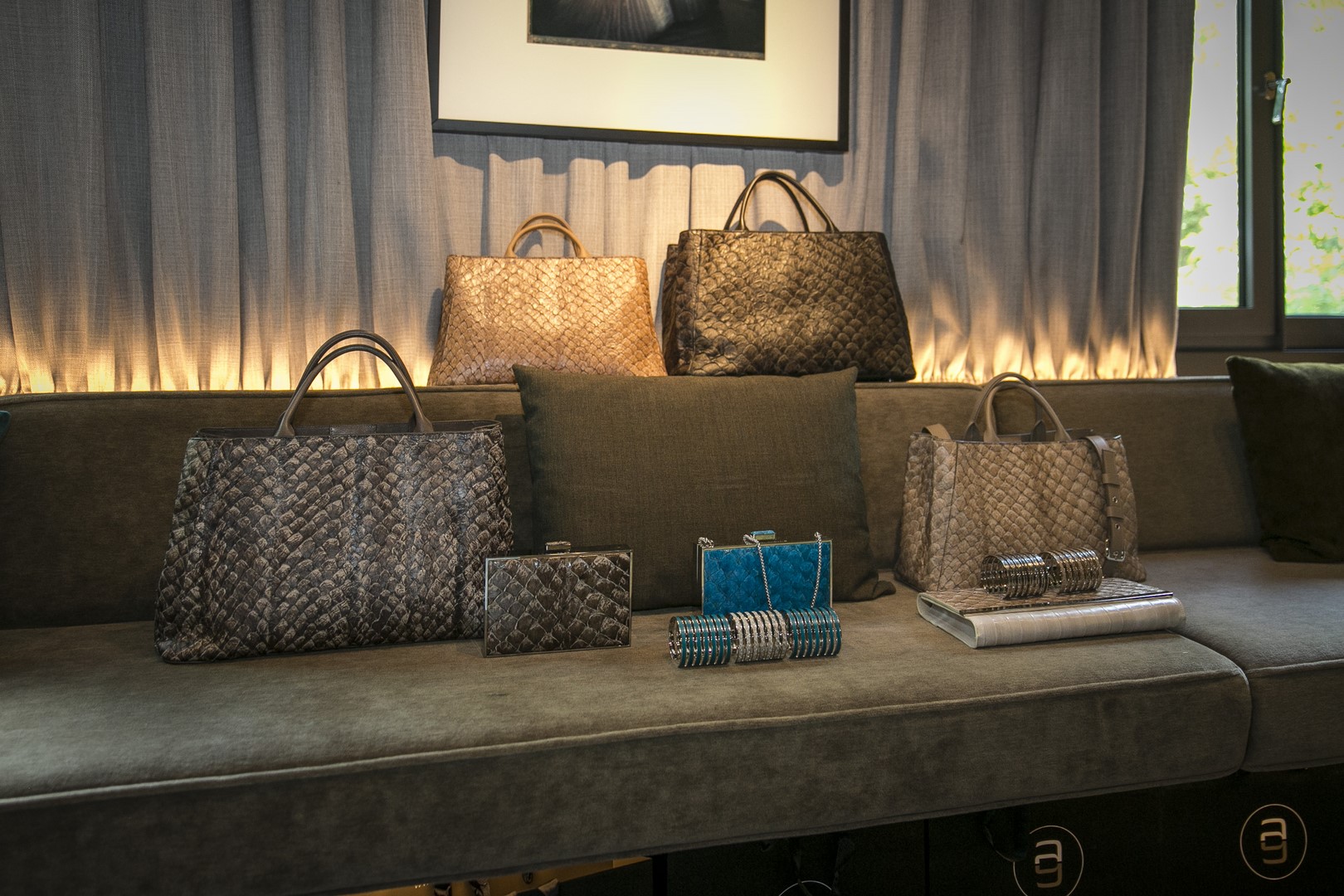 Die zeitlosen und luxuriösen Bags aus nachhaltig gewonnenem Fischleder der in Wien lebenden Französin Adeline Germain begeisterten mit Material und Design. Die Kollektion besticht durch eine Vielfalt an Modellen, praktisch für den Alltag, aber auch exklusiv für jede Party oder den Red Carpet.