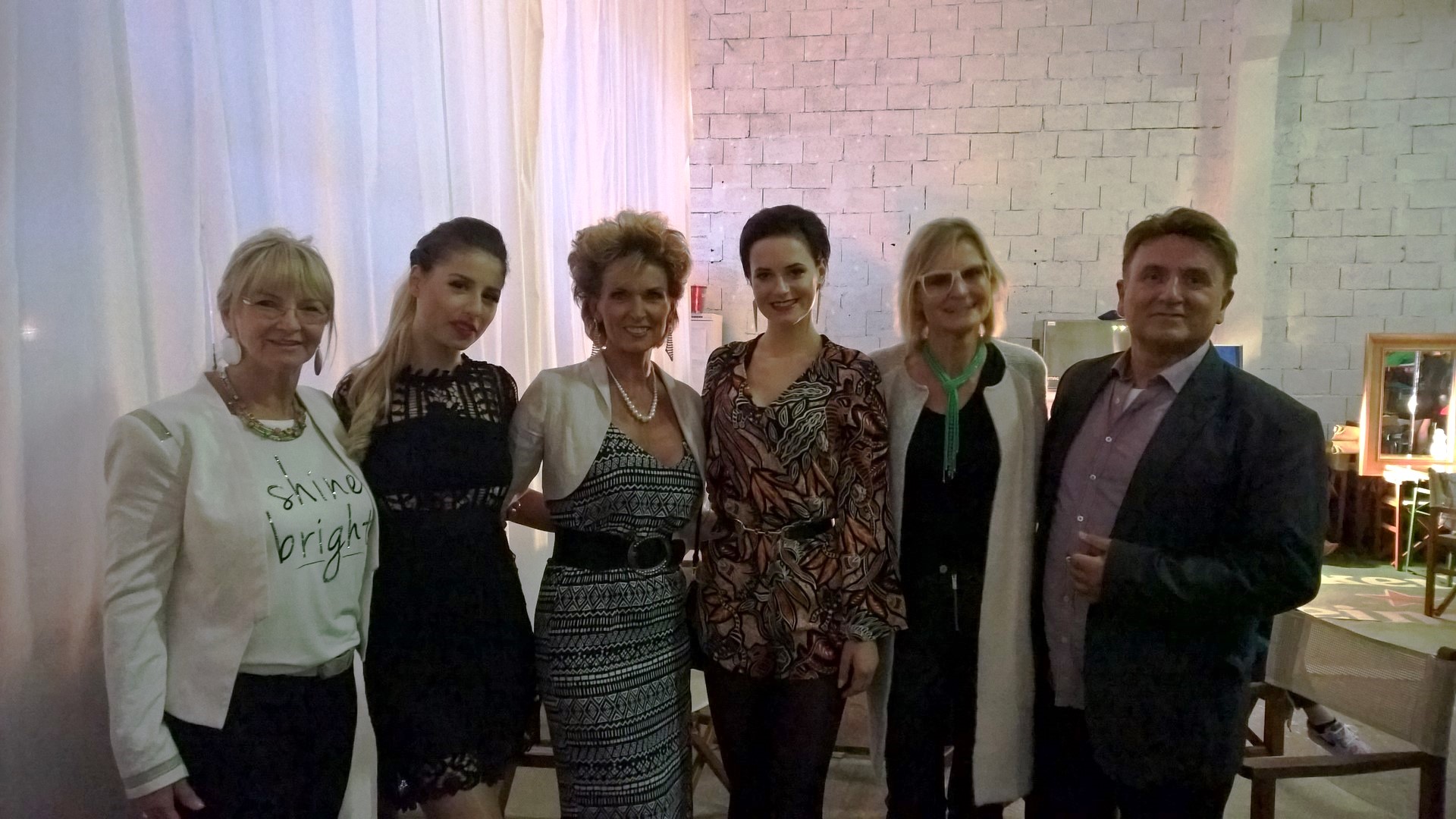 Unternehmerin Edit Stein, Moderatorin/Kolumnistin bei Radio Primavera Liane Wirnsberger (2.vl), Journalistin Hedi Grager (2.vr) und Euromodel Agenturchef William Balser freuten sich mit den Models über die gelungene Show.