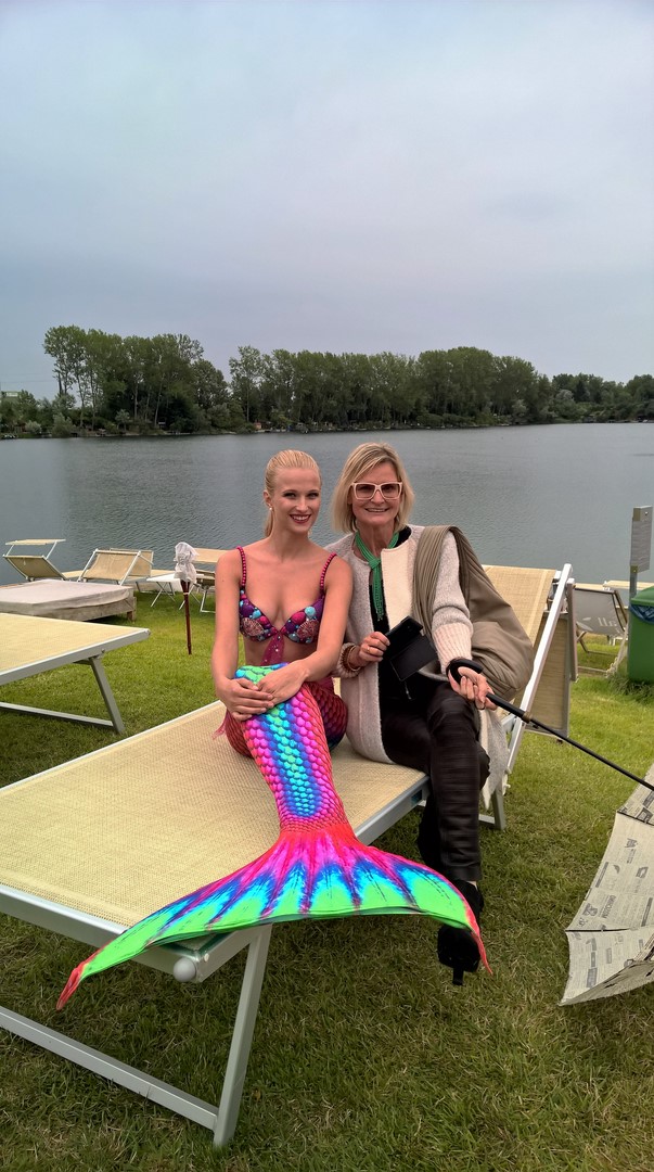 Schnell ein Foto gemacht: Meerjungfrau Elli und Journalistin Hedi Grager (Foto Reinhard Sudy)