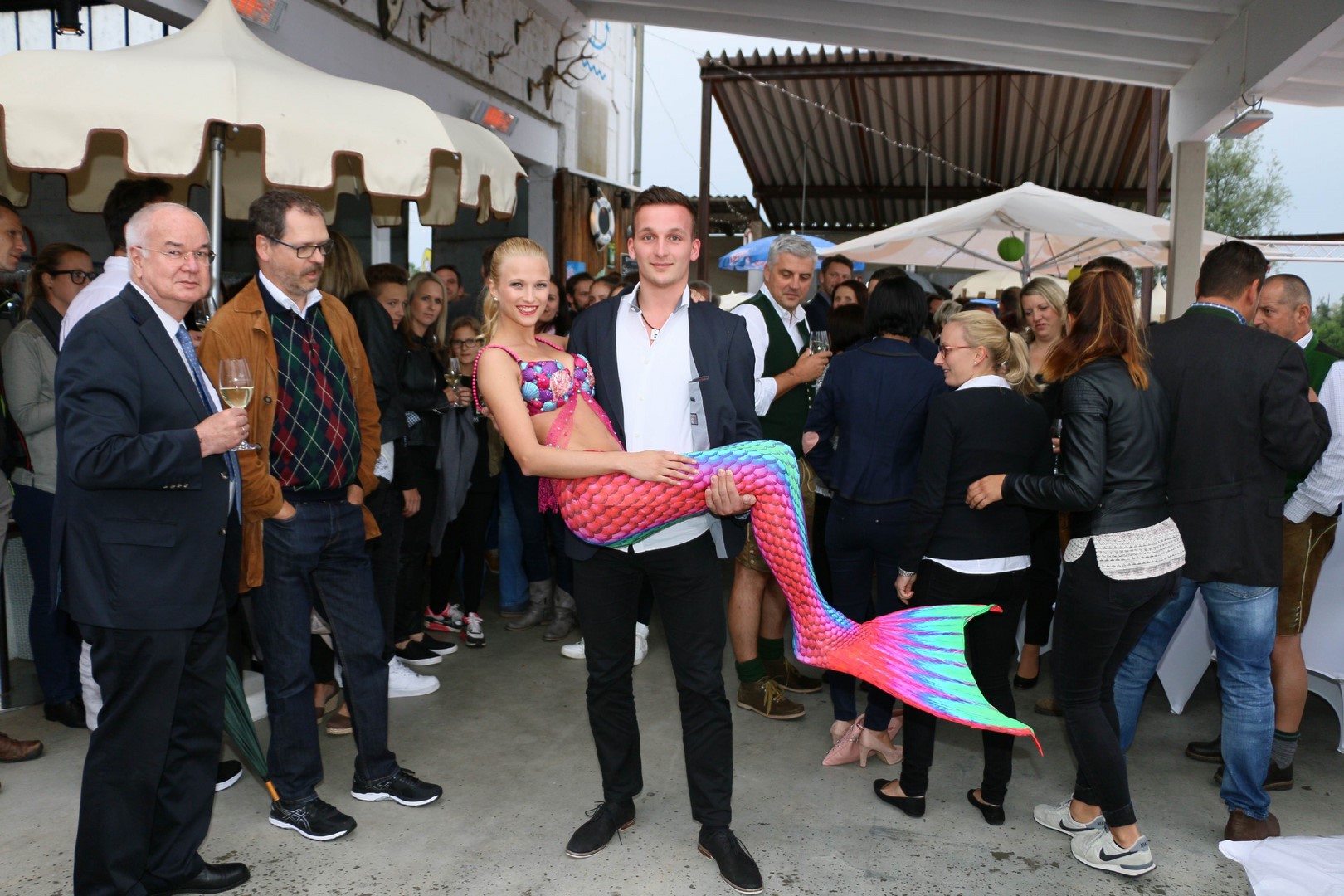 Simply Robert inmitten der Meerjungfrauen – Soroptimist Club Goldes – Charity zugunsten des Projektes „Hautkrebs in der Schwangerschaft“ am Ankerpunkt (Foto Alex Feyh)