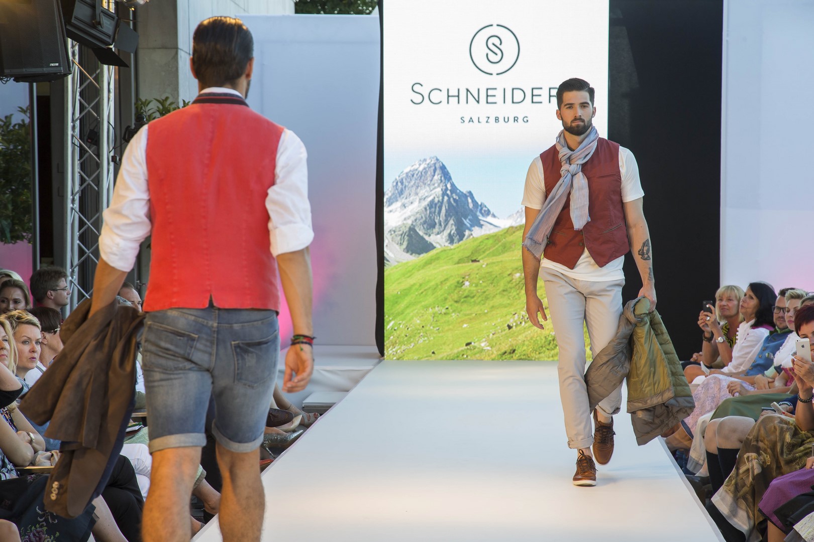 Das Highlight waren dabei sicherlich die „textilen Festspiele“ im Rahmen des „Gipfeltreffens“ auf der Terrasse des Restaurants M32 auf dem Salzburger Mönchsberg. Unglaublich der Blick auf die Salzburger Altstadt – und das bei aufgehendem Vollmond. Bei der Modenschau wirkten die Labels Habsburg, Luis Trenker, Meindl, Mothwurf, Schneiders, Steinbock, Julia Trentini, Wallmann und Wenger mit. Besondere Glückwünsche gab es für KommR Alfons Schneider zum 70-Jahr-Jubiläum seines Unternehmens Schneiders Bekleidung und für Michi Klemera zum 20-jährigen Bestehen des Labels Luis Trenker.
