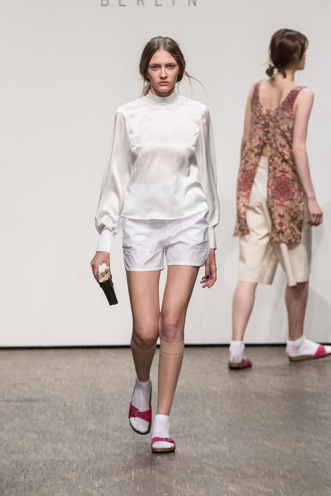 PHILOMENA ZANETTI verwendet dabei ungewöhnliche, statische Materialien wie Kork und Papier, sowie fließende Stoffe aus biologischer Seide und Tencel. Die helle Farbgebung, gepaart mit dunklen Elementen verspricht einen optimistischen und selbstbewussten Blick in die Zukunft der Mode, als auch eine kritische Auseinandersetzung mit der Vergangenheit. Eröffnet werden sollte die Möglichkeit eines neuen Blickwinkels auf die Geschehnisse unserer Zeit.