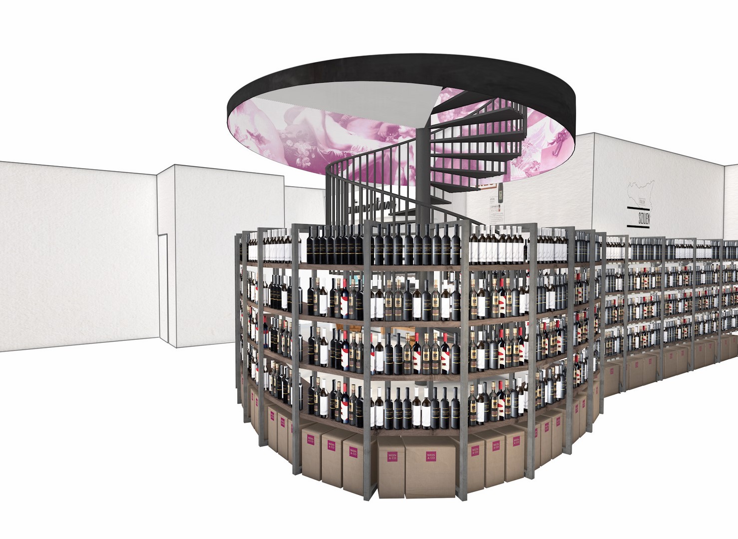 Auf 800 m² entstehen neben dem WEIN & CO Shop im Untergeschoß, ein Bistro inklusive einer Bar im Erdgeschoß, sowie exklusive Tasting Rooms im Obergeschoß. Eine neue Dimension des Genusses, die es in der Wiener City so noch nie gegeben hat, wird damit ab Herbst 2016 ihre Pforten öffnen.