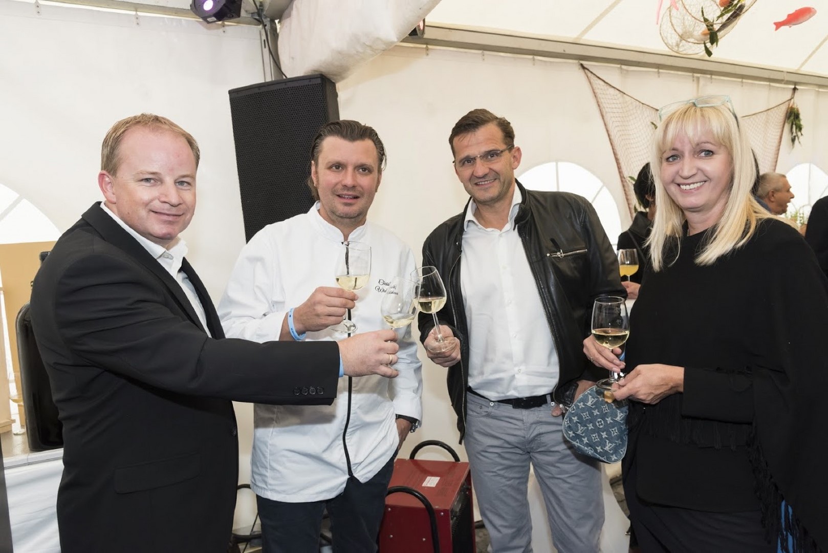 Für das EL PESCADOR wurden nur die besten heimischen Fischproduzenten, aber auch überregionale Produzenten im Alpe Adria Raum als Partner gewonnen. Franz Grossauer, Peter Kraus, Robert Grossauer, Bürgermeister Siegfried Nagl und Christof Widakovich (Foto Werner Krug)