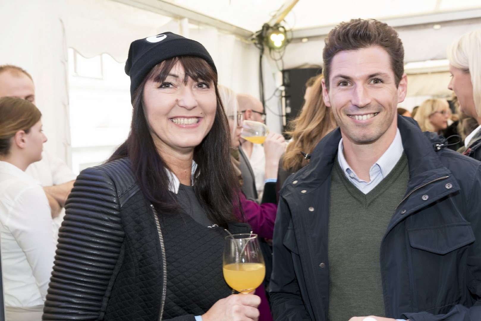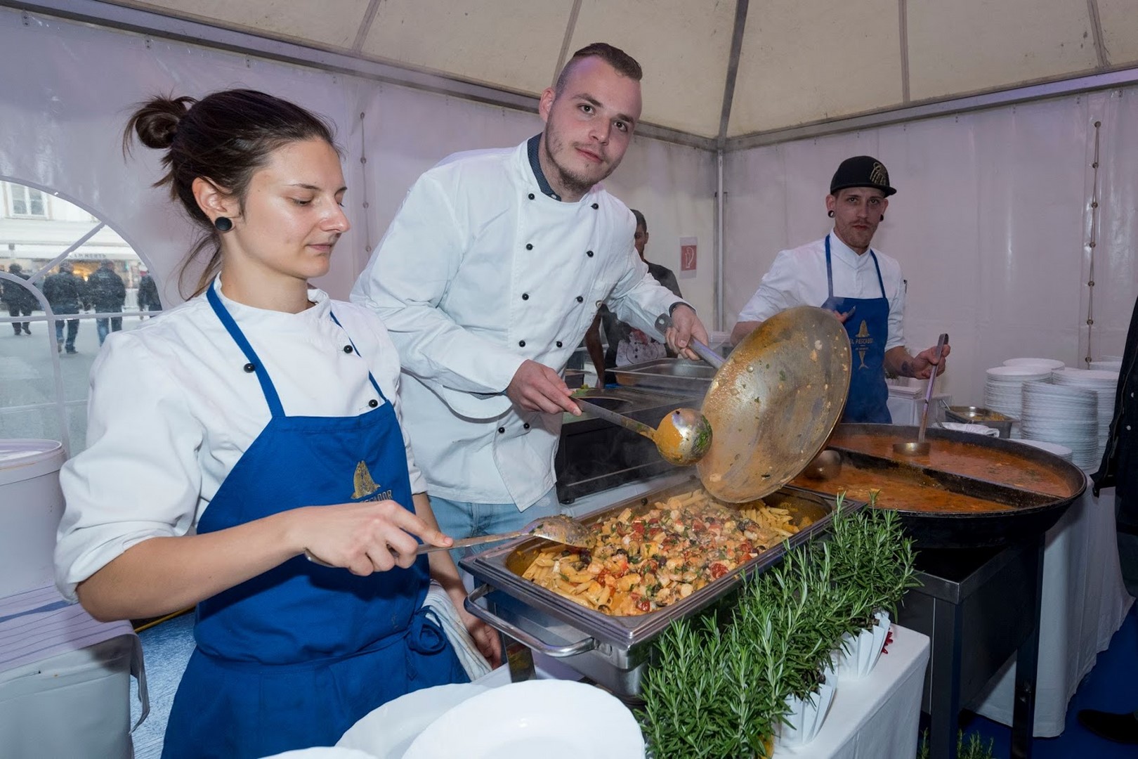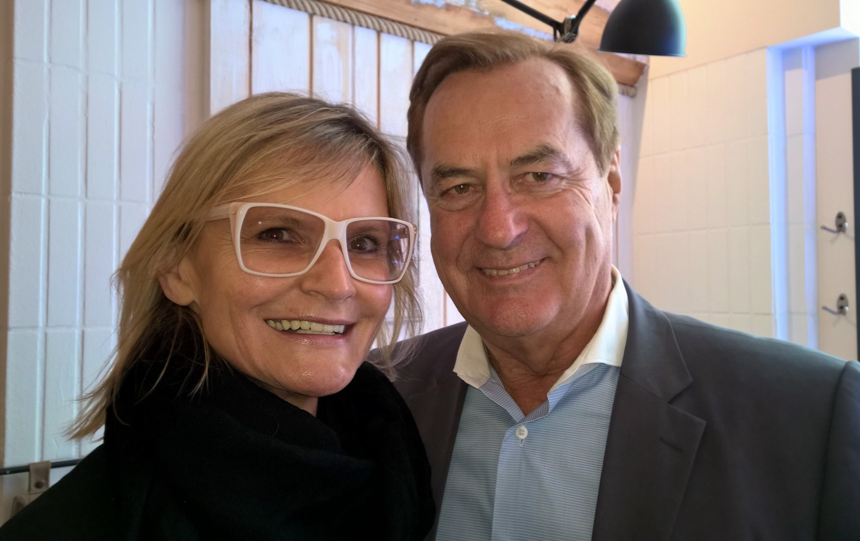 Bei der Eröffnung des EL PESCADOR wurden herrliche kulinarische Kostproben wie Crab Cake Burger, Pasta mit Meeresfrüchten und eine wunderbare Fischsuppe serviert. Hedi Grager mit Christof Widakovich (Foto Conny Pall)