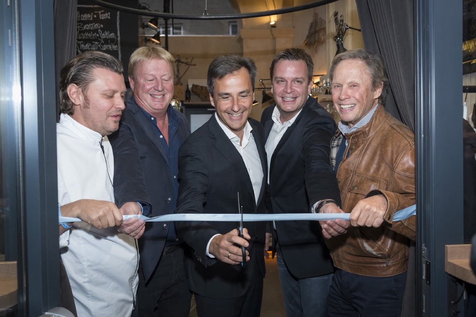Christof Widakovich, Franz Grossauer, Bürgermeister Siegfried Nagl, Robert Grossauer und Peter Kraus bei der Eröffnung des EL PESCADOR (Foto Werner Krug)