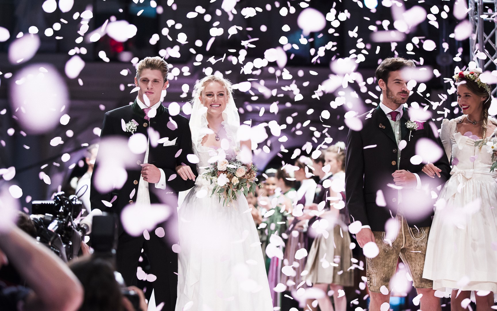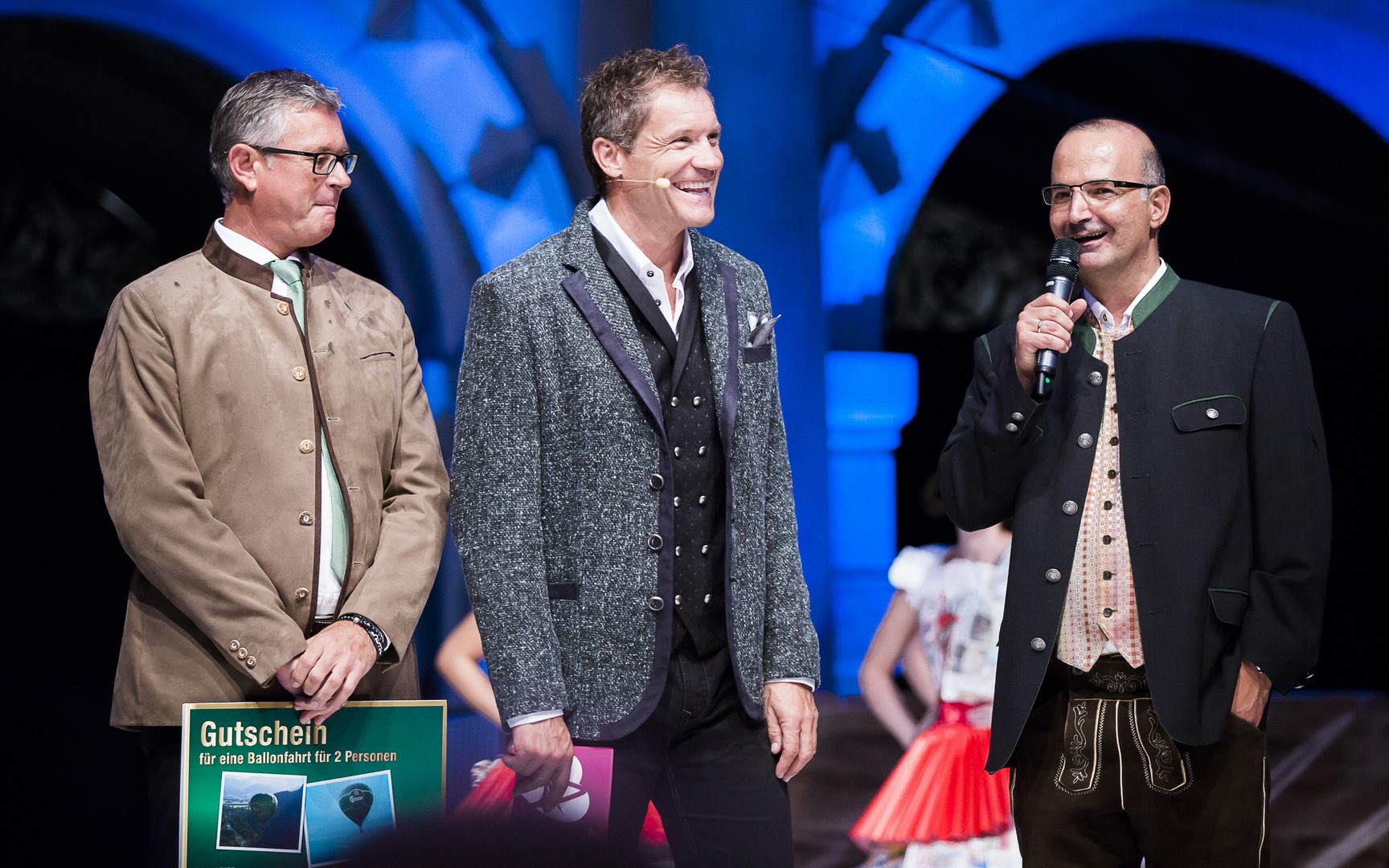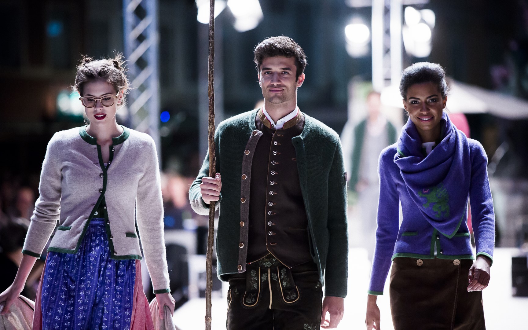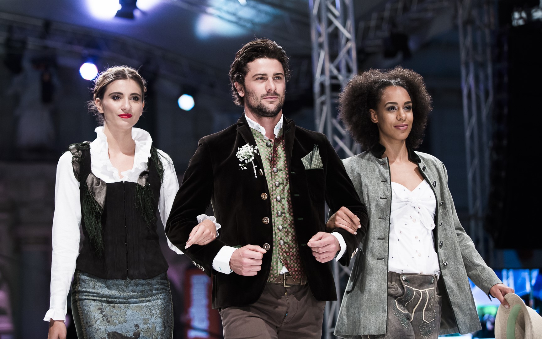 Mistermacher Philipp Knefz schickte seine Schützlinge auch auf den Laufsteg der „Pracht der Tracht“: Jörg Eggenberger, Marc Sixt und Nico Ressmann.