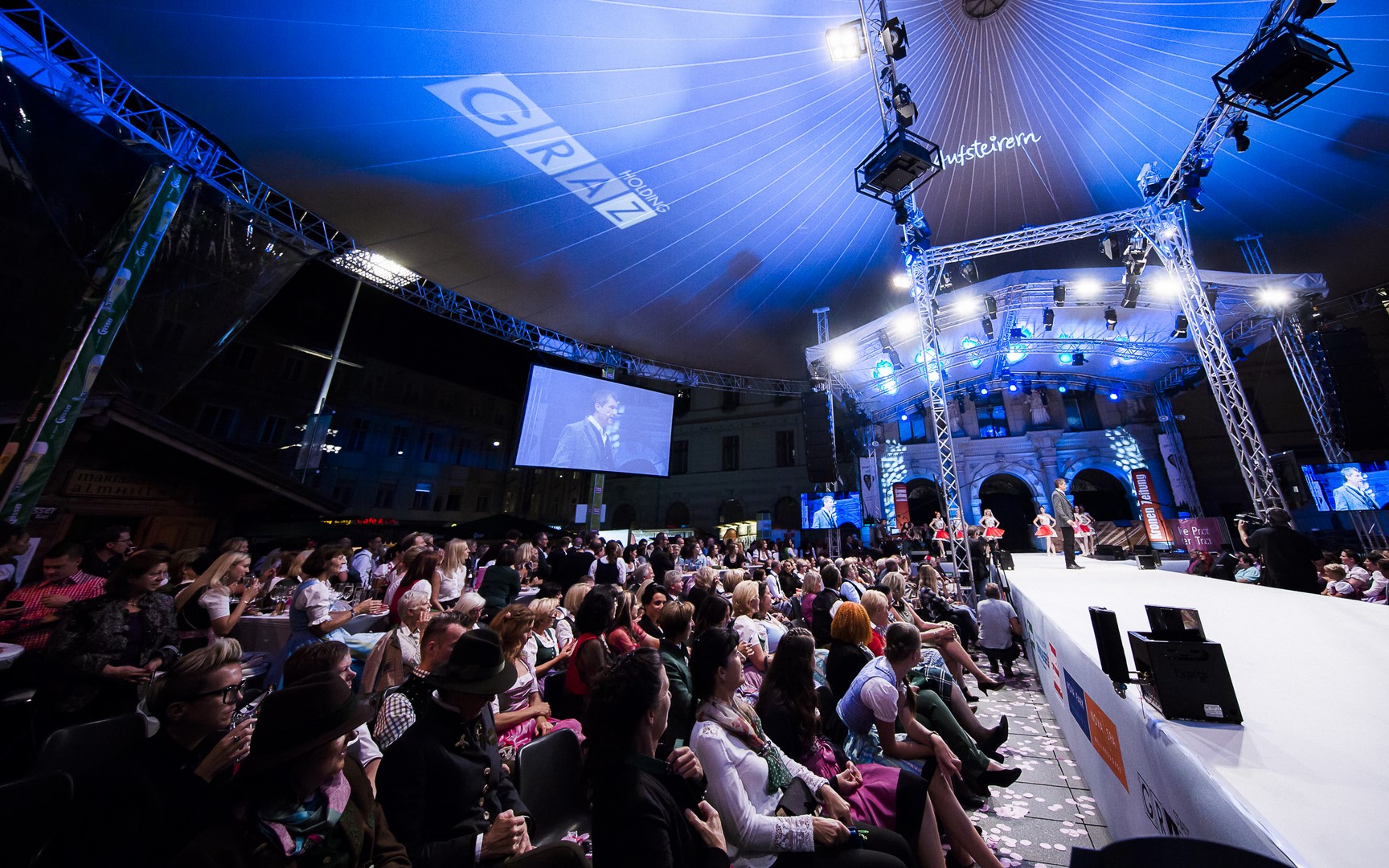 15 Trachtenausstatter zeigten 25 Modelabels auf einem 130 Meter langen Laufsteg vor dem Grazer Rathaus und rückten die steirische Tracht ins Rampenlicht.