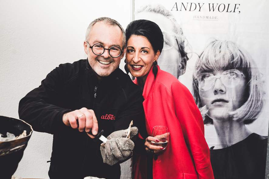 Zur Jahresparty feierte die Metallkollektion des steirischen Brillenlabels Österreichpremiere. Die frisch getraute Katharina Schlager stellte mit Co-Geschäftsführer Andreas Birkheim federleichte Modelle aus Metall vor. Was kürzlich in Paris heftig beklatscht wurde, fand auch in Graz großen Anklang: Anlässlich des 10jährigen Jubiläums von Andy Wolf entschloss sich das Team zur ersten Metallkollektion, und kaufte dafür gleich eine Manufaktur im französischen Jura, in der höchste Qualität gefertigt wird.