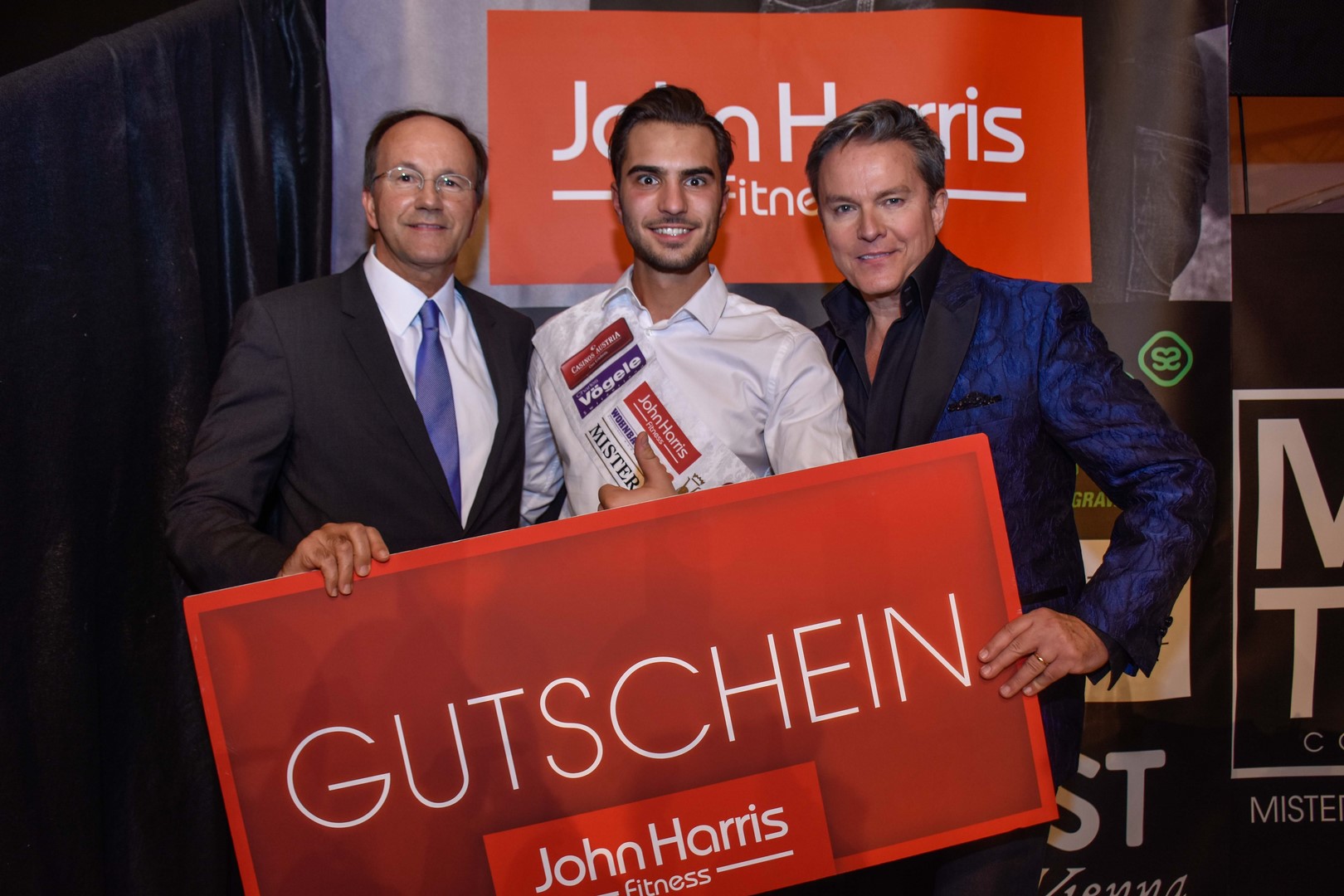 John Harris Inhaber Ernst Minar, Mister Austria 2016 Philipp Rafetseder und Moderator Alfons Haider (Foto Mister Company/Pail)Spendenaktion für Aids Life / Life Ball
