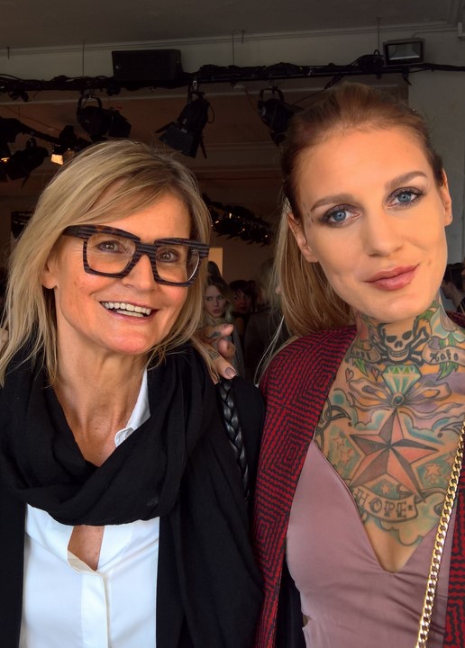 Journalistin und Bloggerin Hedi Grager und das erfolgreiche Tattoomodel Lexy Hell bei Lena Hoschek’s Show in Berlin (Foto privat)