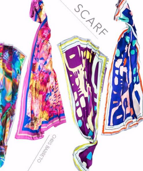 Chris arbeitet ausschließlich mit eigenen Motiven, die auf verschiedenste Produkte wie Schals, Kleider, Wandteppiche, Homedecor, Pölster, Wandposter, Bilder etc. gedruckt werden. Ihre Produktionsstätte befindet sich in ihrer Heimat, in der Nähe von Rio de Janeiro.