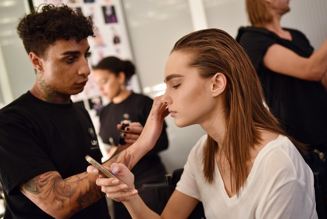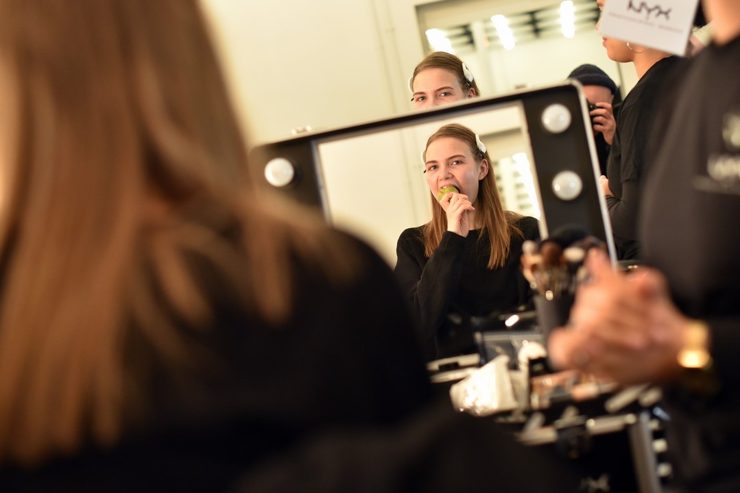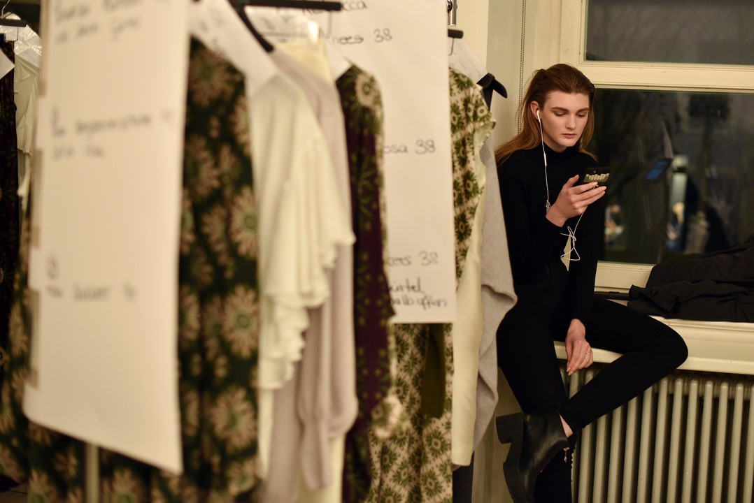 BERLIN, GERMANY – JANUARY 18: Models prepare backstage ahead of the Marcel Ostertag show during the Mercedes-Benz Fashion Week Berlin A/W 2017 at on January 18, 2017 in Berlin, Germany. (Photo by Zacharie Scheurer/Getty Images for IMG)