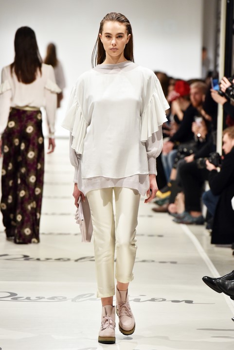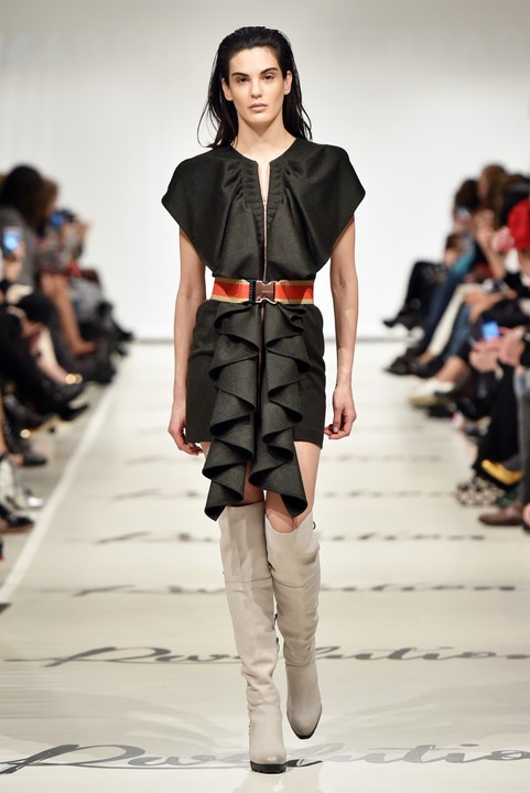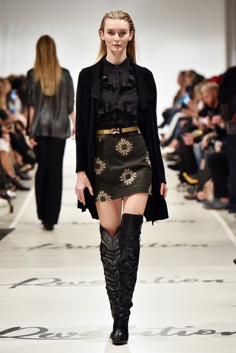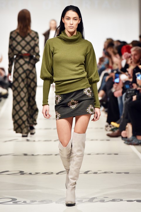 Erstmalig arbeitete Marcel mit Materialien, die eigentlich in der Trachtenwelt angesiedelt sind: Lodenstoffe. Dieses „Wind und Wetter“-taugliche Material interpretiert er modern und zeitlos, seine Kollektion verspielt, romantisch und feminin.