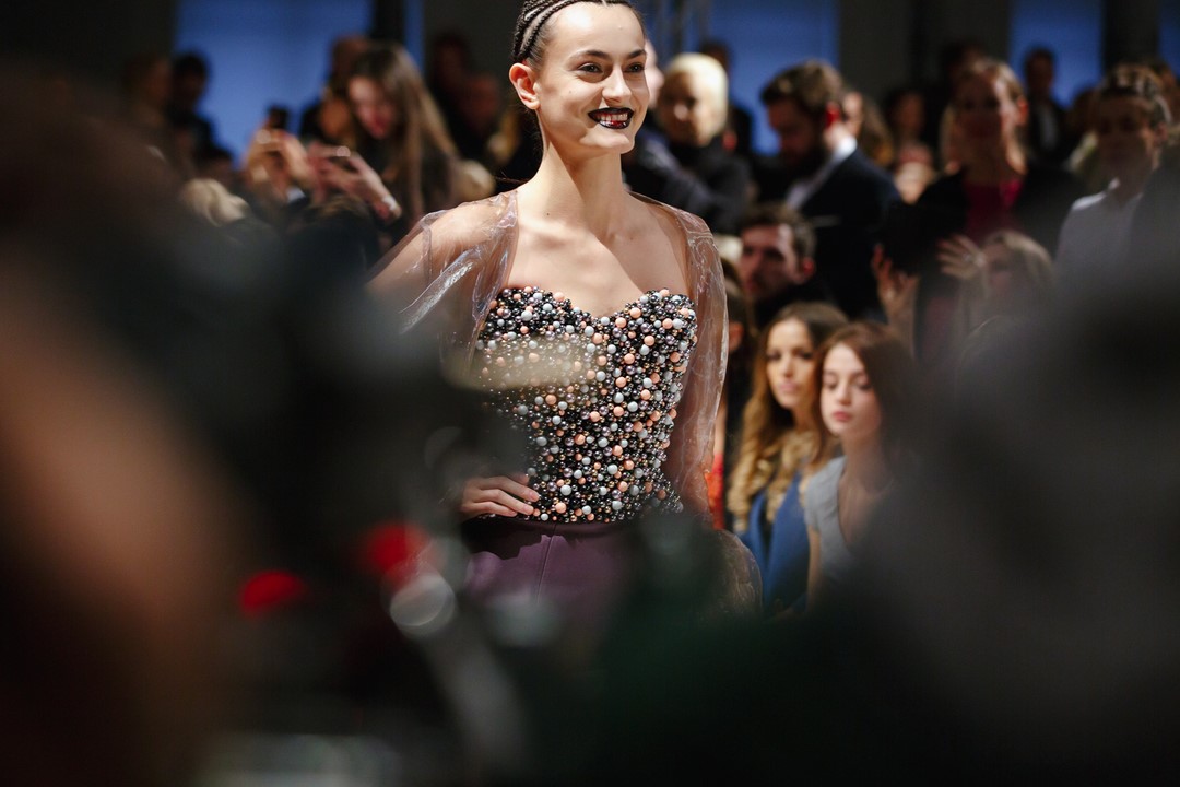 „You want it darker“ von Leonhard Cohen war bei Marina Hoermanseder zu hören – und tatsächlich zeigte die international auf Erfolgskurs segelnde Wiener Designerin ihre charakteristischen Corsagen und Kleider diesmal erstmalig auch in den Farben tiefschwarz und einem morbiden Lila auf der Berliner Fashion Week. Sie wollte damit überraschen – und das ist ihr auch gelungen.