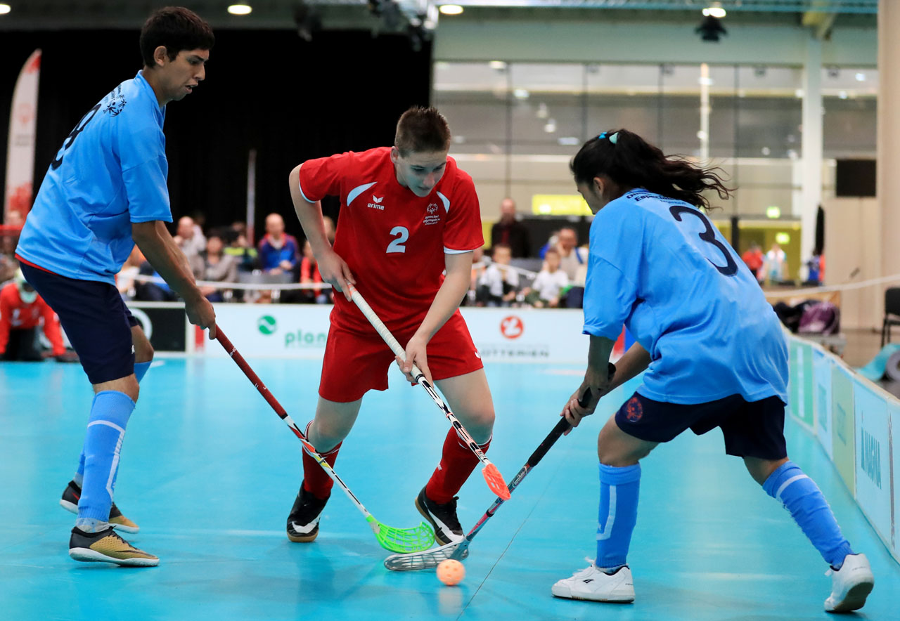 GRAZ,AUSTRIA,19.MAR.17 – SPECIAL OLYMPICS, FLOORBALL – World Winter Games, round robin games. Image shows Special Olympics athletes from Argentina and Austria/ Europe. Photo: GEPA pictures/ Mario Buehner
