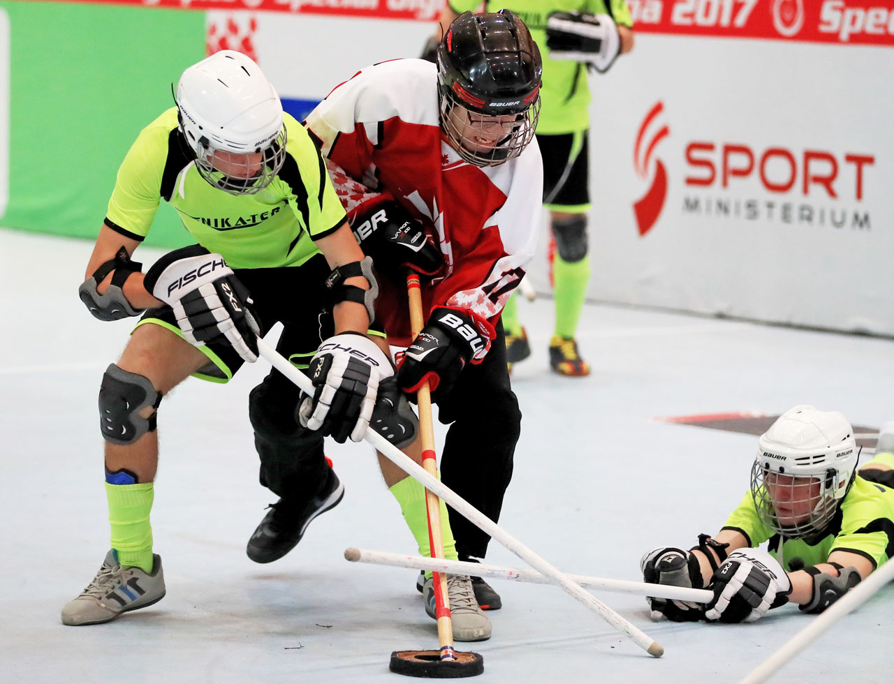 GRAZ,AUSTRIA,19.MAR.17 – SPECIAL OLYMPICS, FLOOR HOCKEY – World Winter Games, round robin games. Image shows Special Olympics athletes from Ukraine/ Europe and Canada. Photo: GEPA pictures/ Mario Buehner