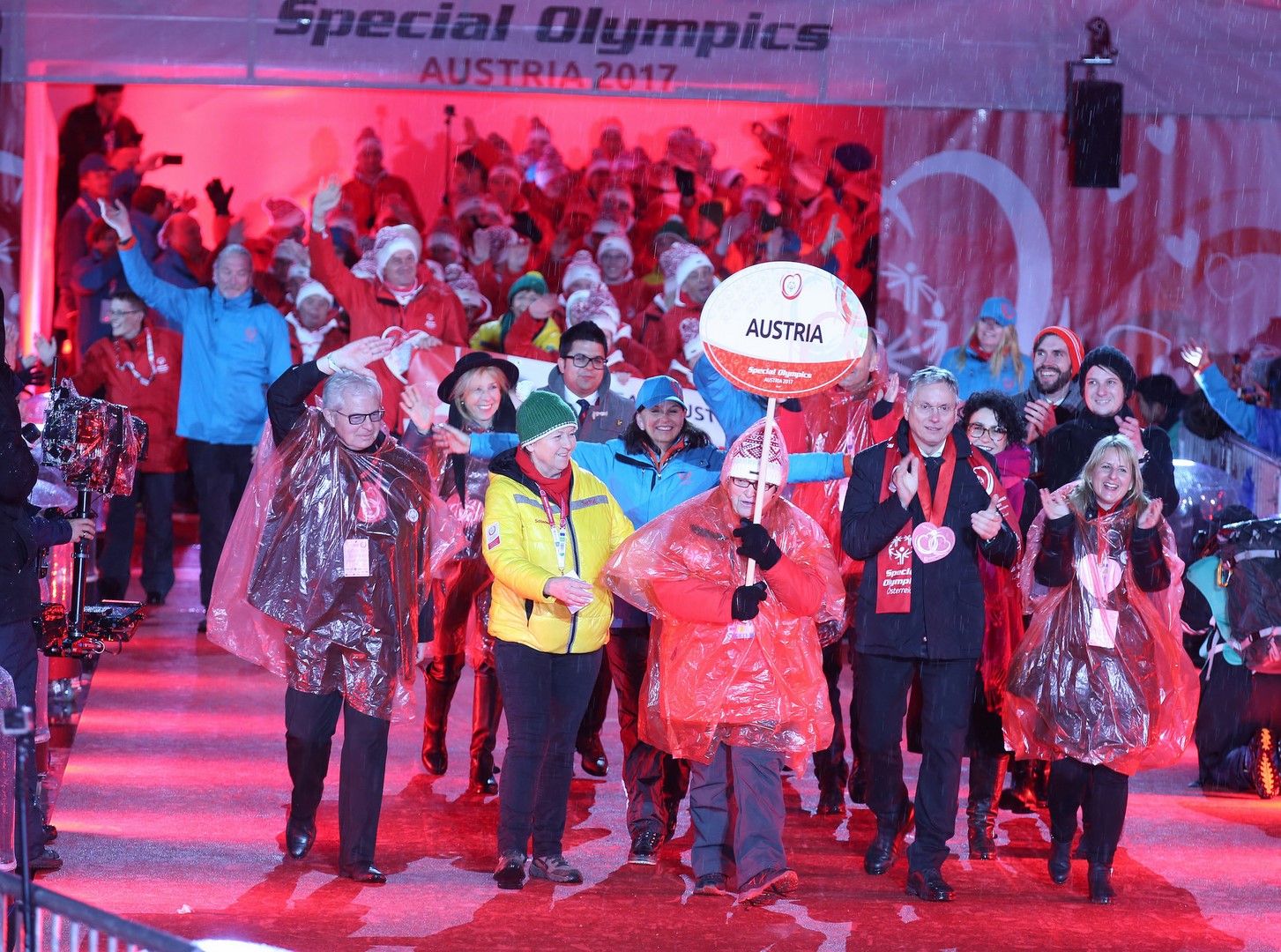 Den musikalischen Reigen des Abends eröffnete Rose May Alaba, die den Coca-Cola Unified-Song auf der Bühne präsentierte, während die 105 Delegationen einzogen – flankiert von prominenten Delegationsbegleitern wie Timothy Shriver (Chairman SOI), Mary Davis (CEO SOI), Donna de Varona (Schwimm-Olympiasiegerin), Michelle Kwan (Olympiamedaillengewinnerin), Angelo Moratti (Vice Chairman SOI), Samuel Perkins (Olympiasieger), Charlene von Monaco, Jason Mraz (Grammy-Gewinner), Prinzessin Nora von Liechtenstein, Erzherzog Guillaume von Luxemburg, Minister Hans Peter Doskozil, Minister Wolfgang Sobotka, Landeshauptmann Hermann Schützenhöfer, BSO-Präsident Rudolf Hundstorfer, Klaus Eberhartinger (Entertainer), Fritz Kristoferitsch (Bandleader Edlseer), Heather Mills, die ÖSV-Skifahrer Conny Hütter und Christian Walder, die ehemaligen Skistars Peter Wirnsberger, Reinfried Herbst, Marco Büchel, Emese Hunyady und Harry Winkler, Bundesliga-Präsident Hans Rinner u. v. m.
